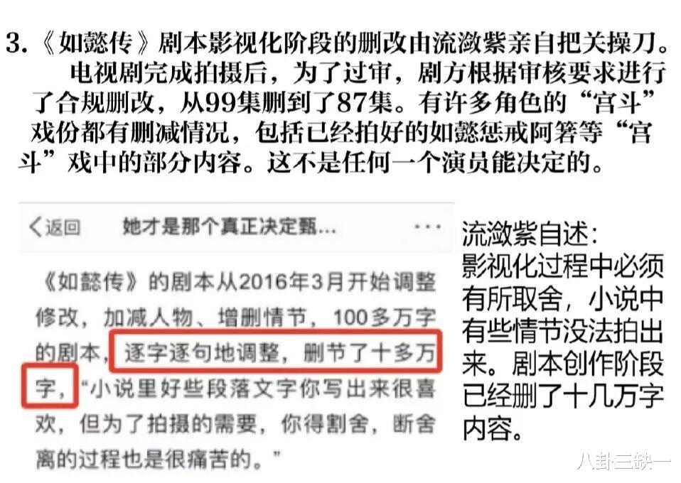 原著作者兼编剧也强调过,剧版主题本就是“帝王婚姻围城”,删减宫斗内容是因为广电审查,不是演员个人的行为。