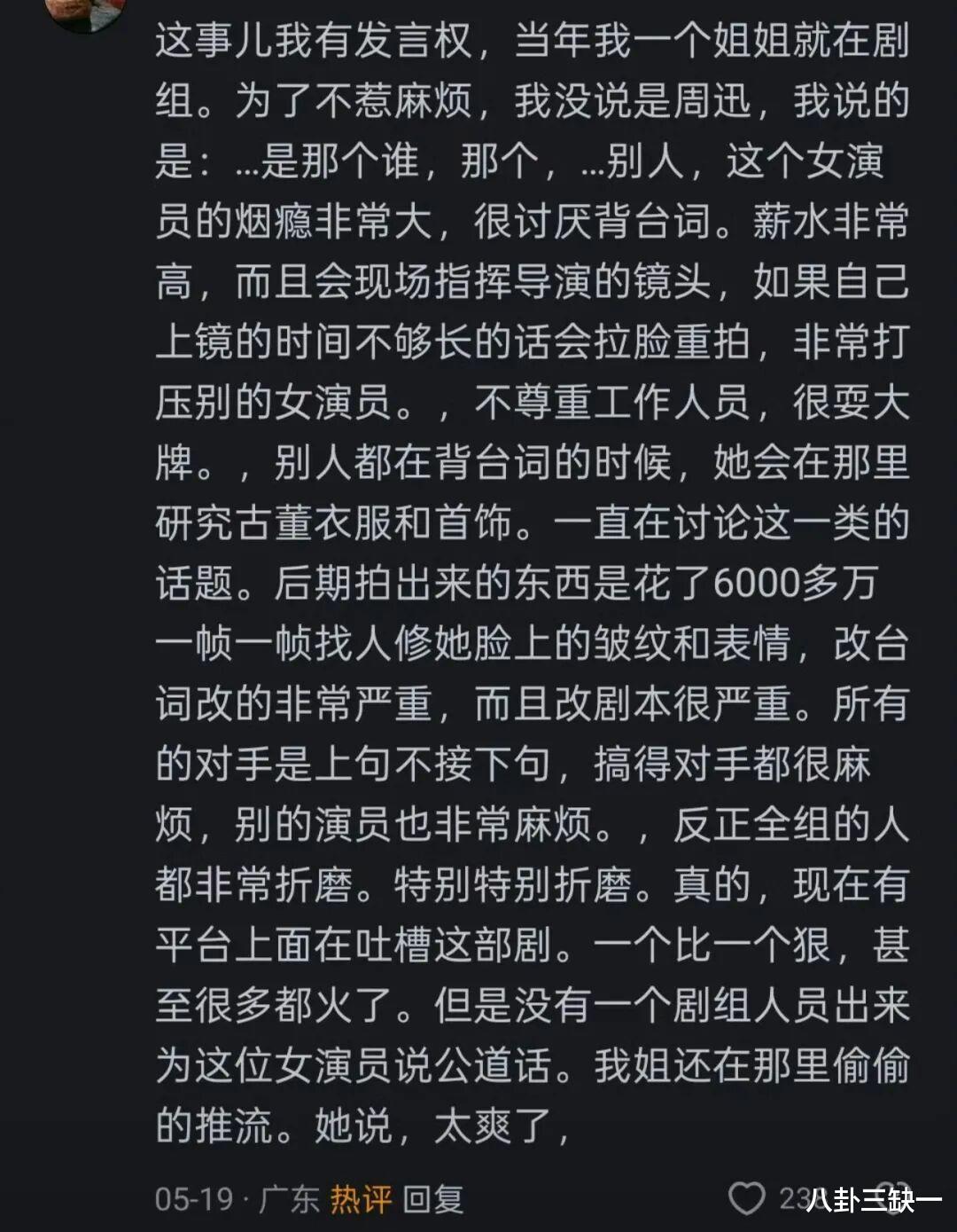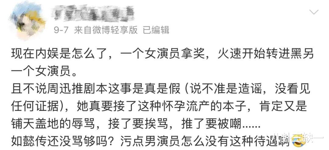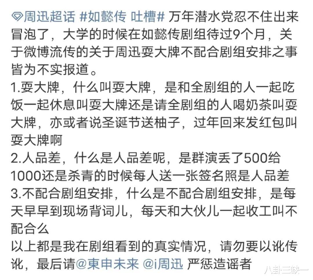 甚至趁机翻出旧话,再次毫无依据地散布起“周迅在剧组会擅自改剧本”的谣言。