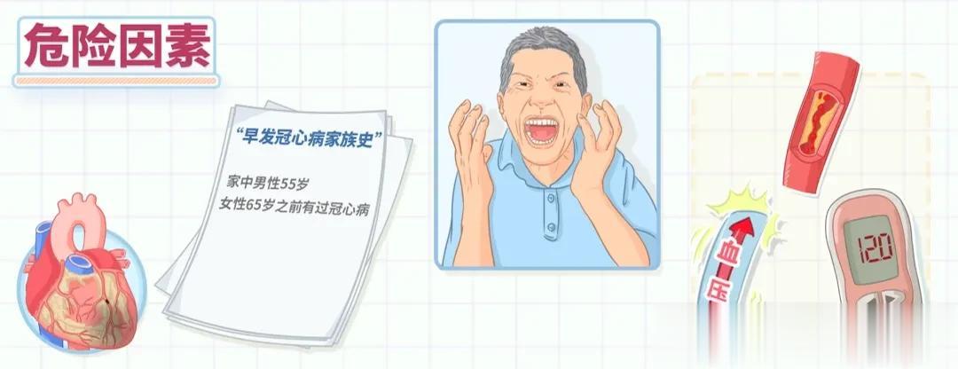 ②遗传因素:如果家里有人很早就得冠心病(男性55岁前、女性65岁前发病),后代一定要多留意,平时做好预防和定期检查。