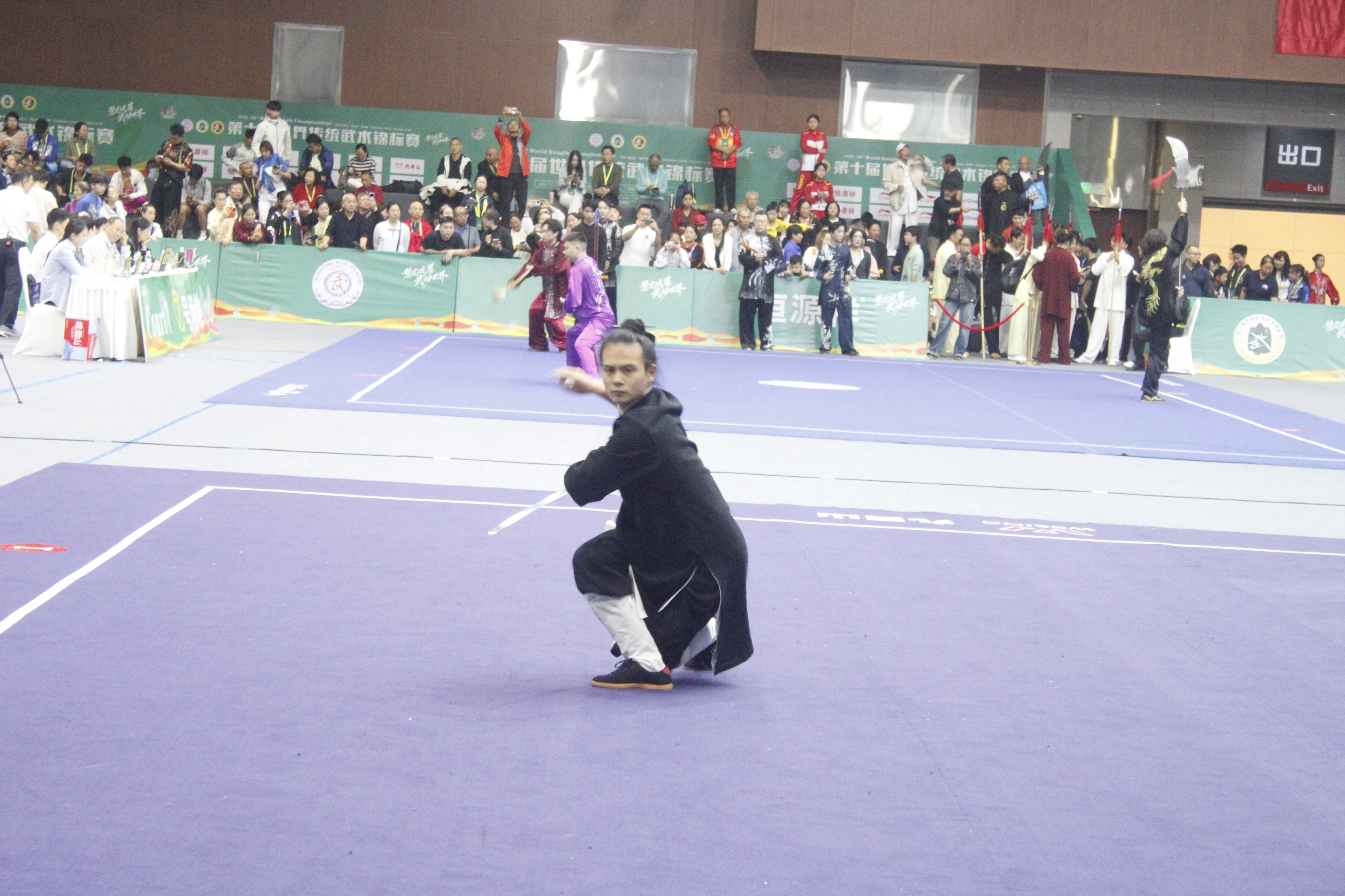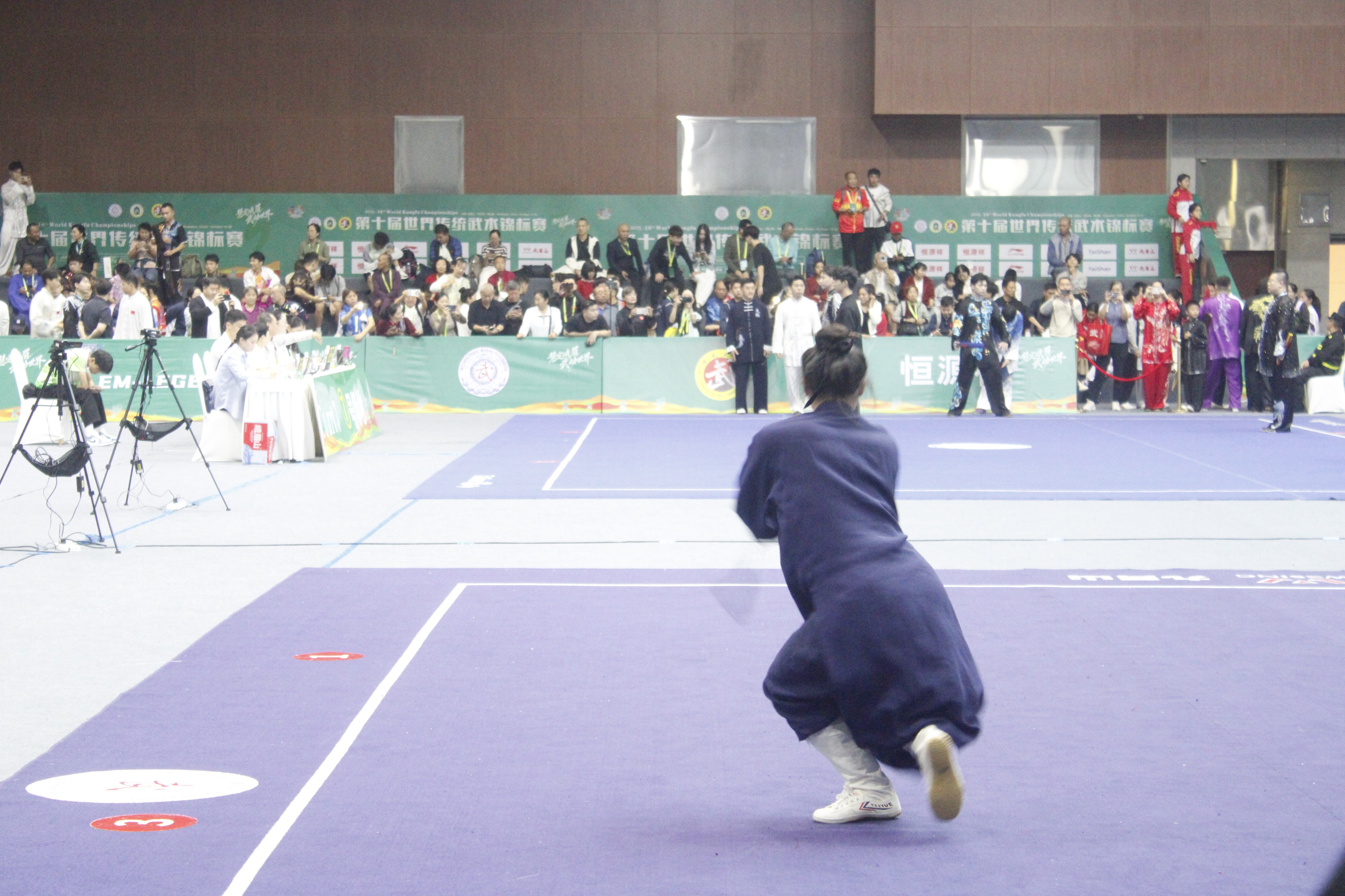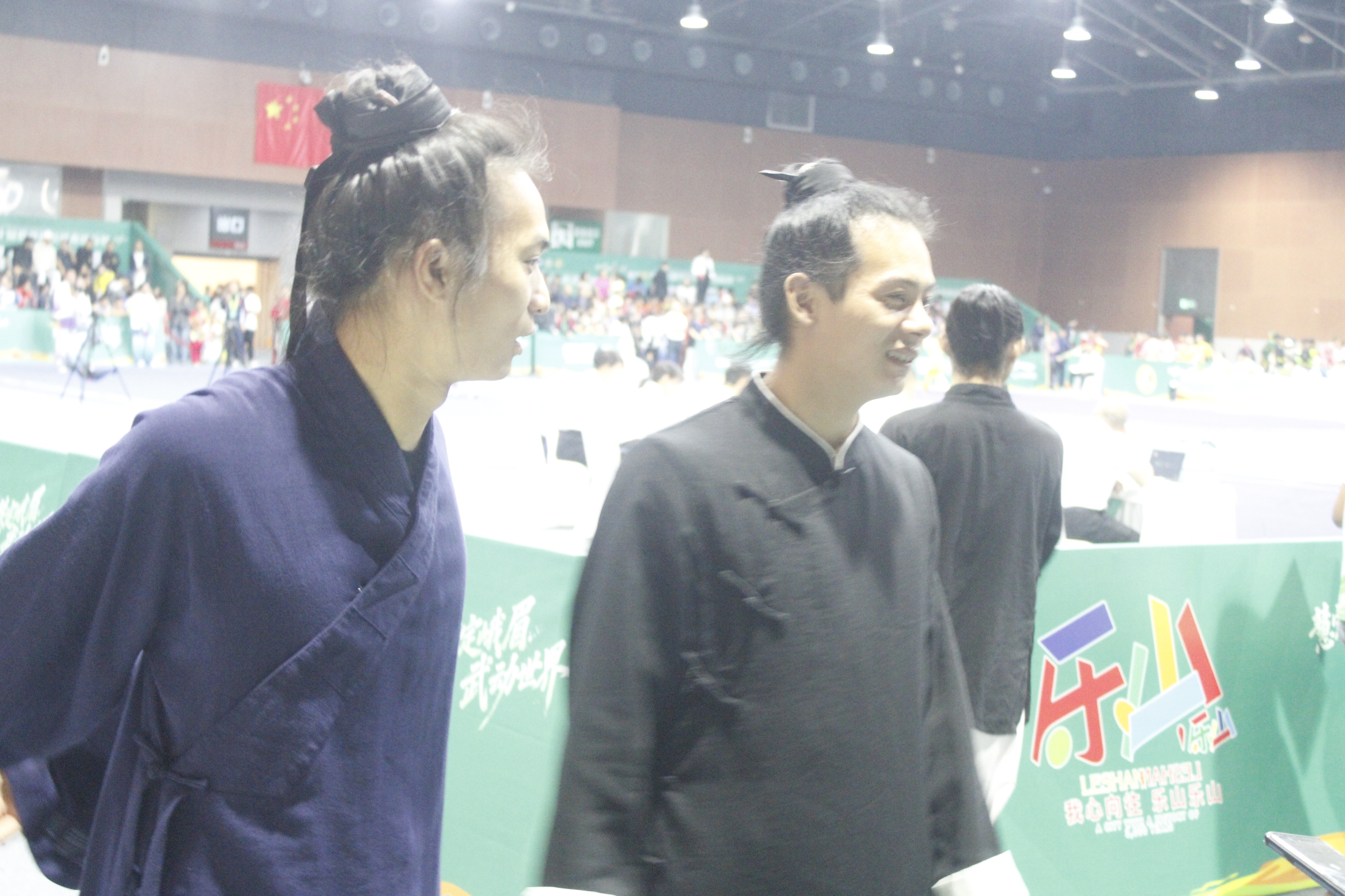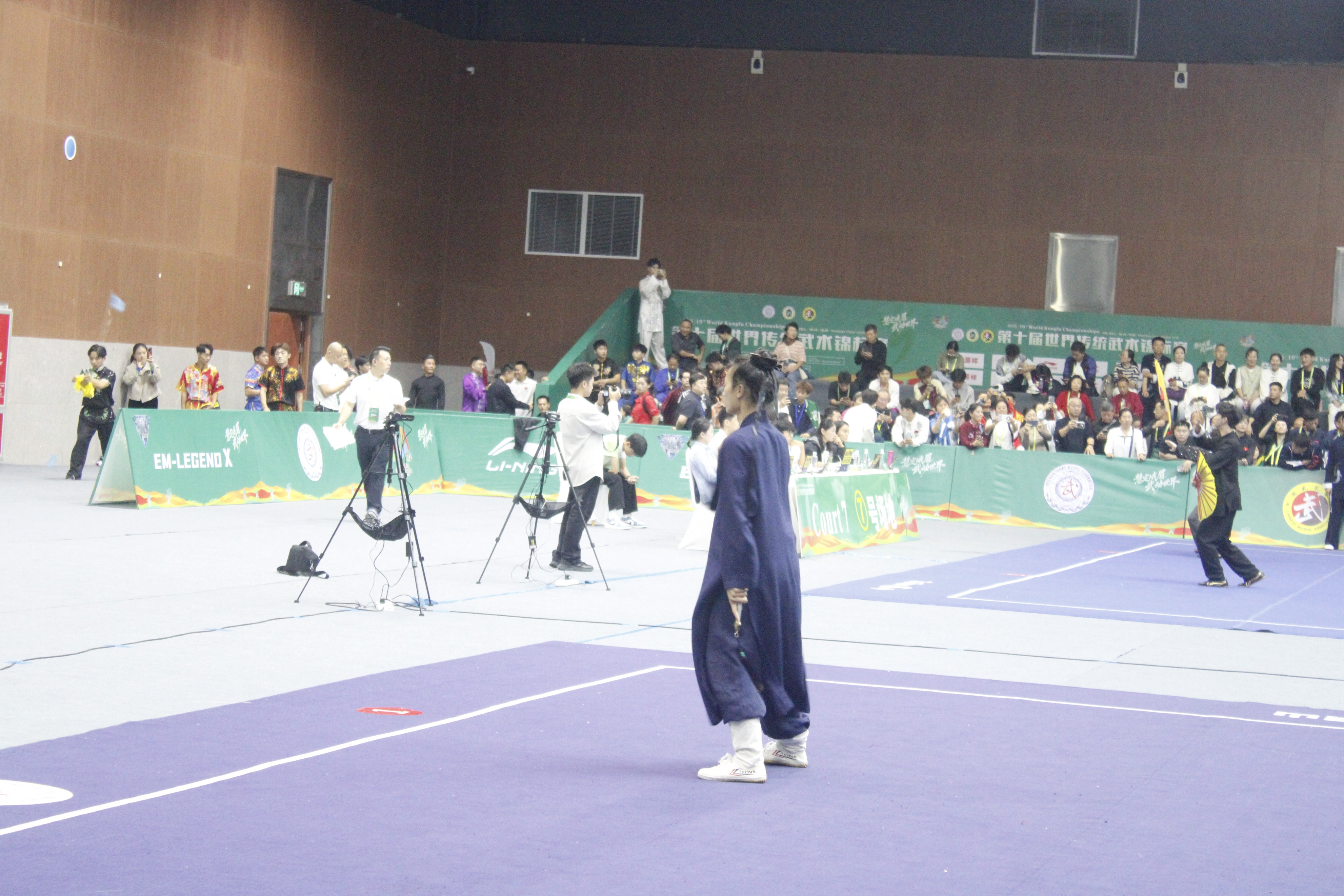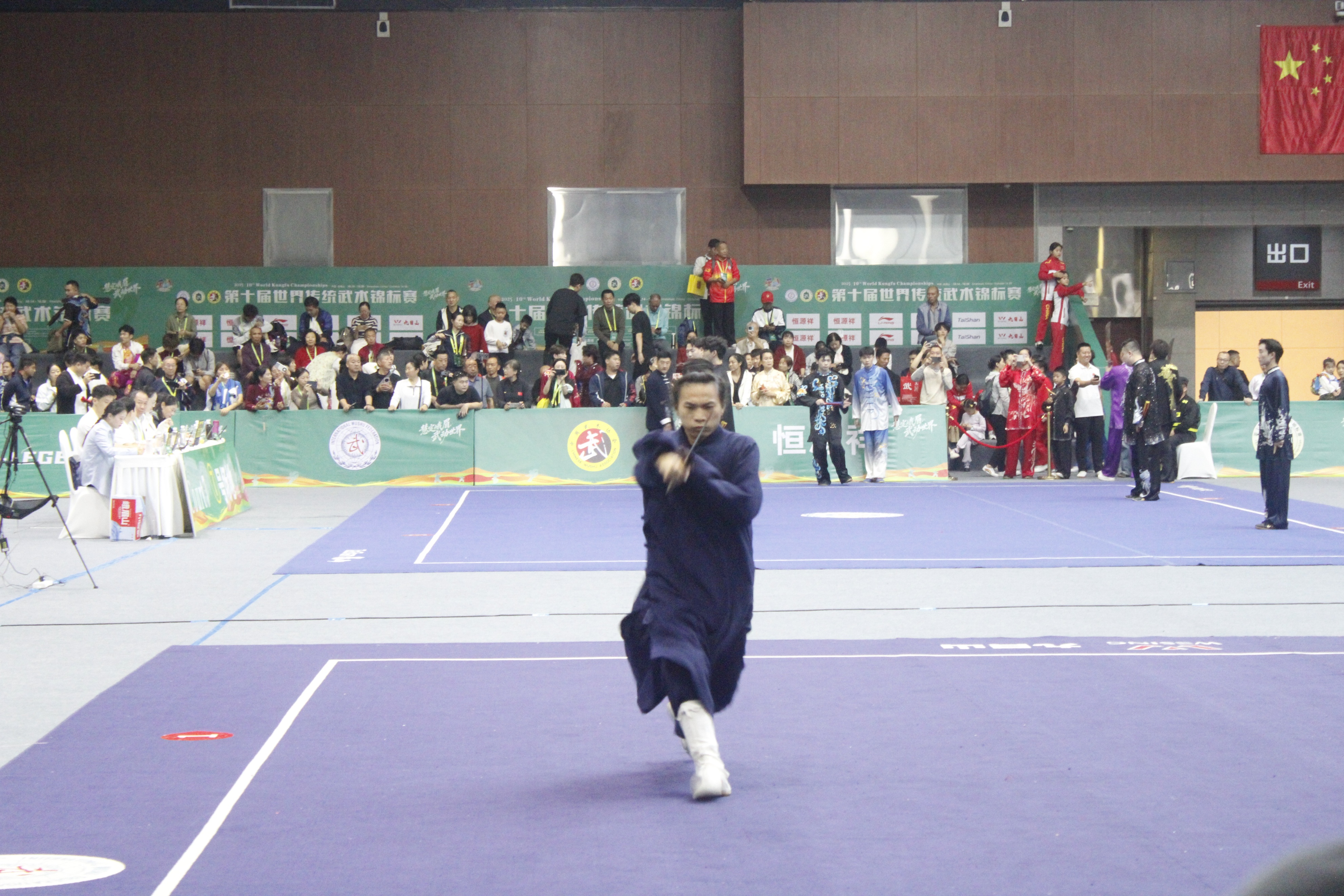 现场两个武当道长是广东队的,拿了九点多的高分,云剑耍得很飘逸。