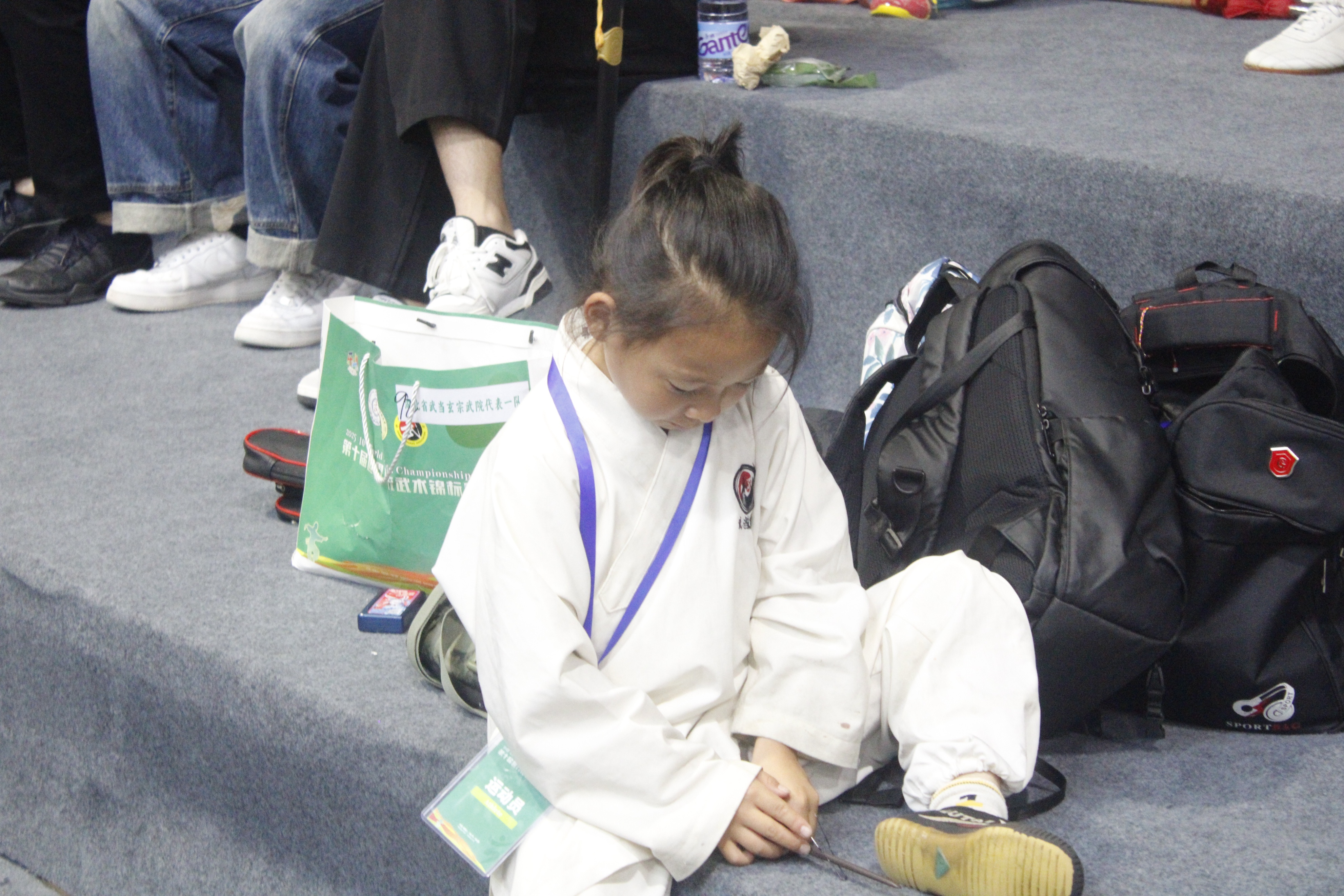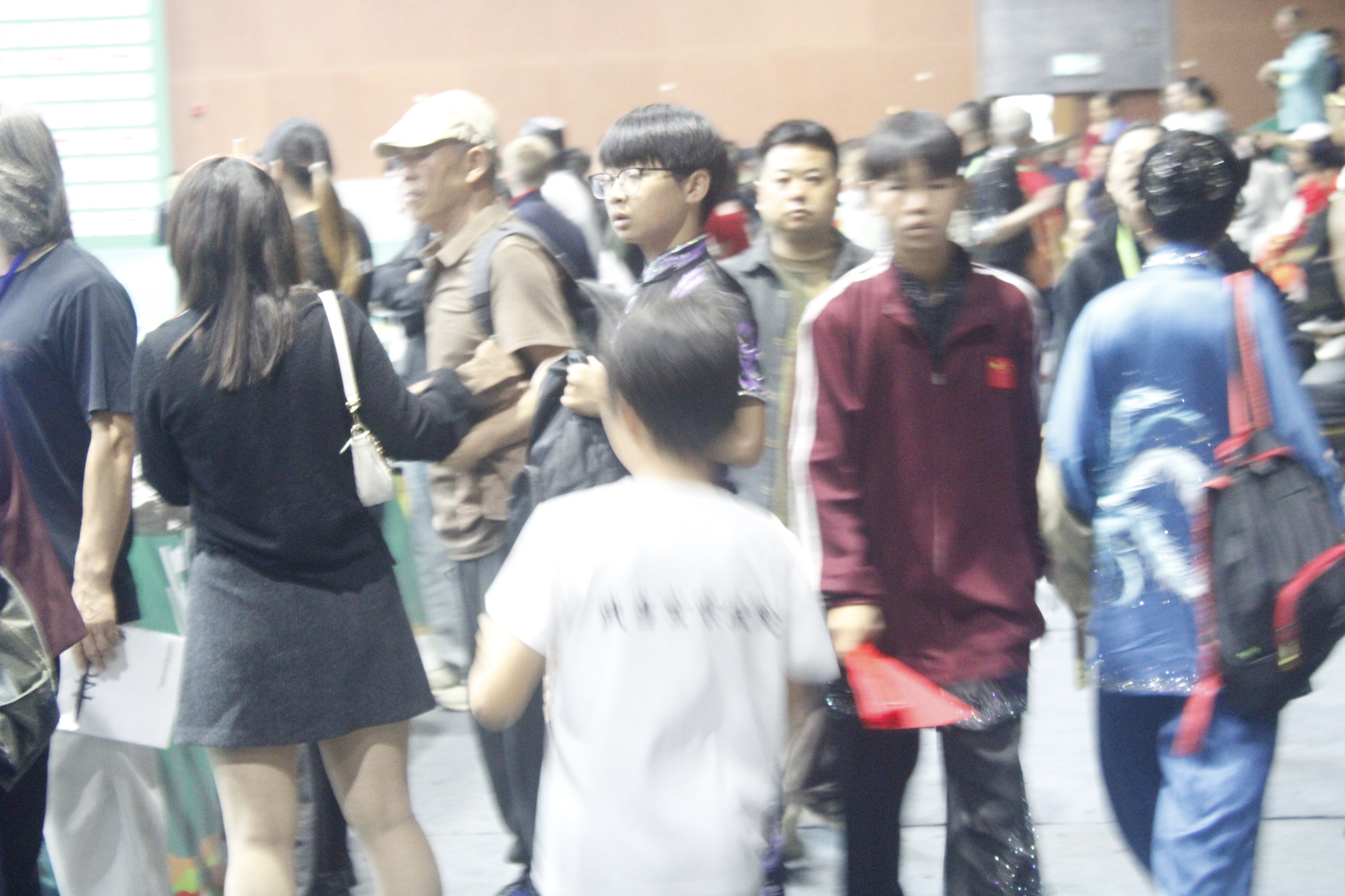 在成绩公布区域,看到一个润出去的美国华人妈妈带着似乎没有获奖的儿子在分析成绩单。小孩是搞单刀的,搞单刀的人太多了,很难得到名次。这个妈妈仔细地分析成绩单,有的朋友是搞枪法的,一组才四个人,有四个人就可以比赛,个个都有奖。名次重不重要呢?名次太重要了,直接和奖金、经费、社会地位挂钩。