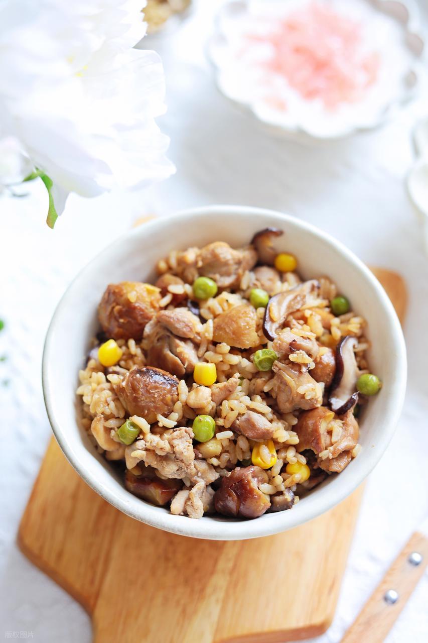 1,大米淘洗干净,板栗去皮切半,五花肉切薄片。2,锅里少许油,将五花肉煸炒出油,加入香菇丝、板栗一同翻炒。3,然后倒入大米,加适量生抽、盐调味,一起翻炒均匀后转入电饭锅,加入比平时煮饭略少的水,按下煮饭键。煮好的板栗饭香气扑鼻,板栗的甜糯与米饭的香软完美融合。