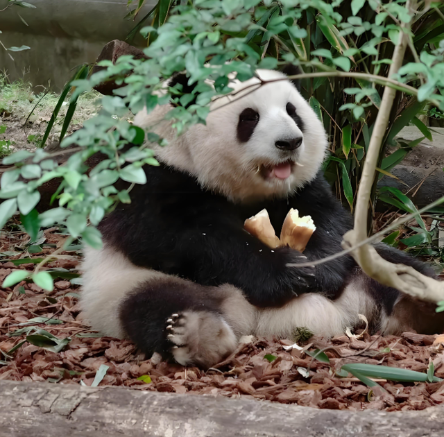 说到熊猫界的“显眼包”,就不能不提“顶流女明星”花花,虽然花花看起来软乎乎、糯叽叽,一副与世无争的样子,但其实也是个隐藏的“显眼包”。别的熊猫抢竹子都是靠武力,花花抢竹子靠“卖萌+耍赖”,它抢不过别的熊猫,就往地上一坐,两只前爪抱在胸前,脑袋一低,哼哼唧唧的,那委屈巴巴的模样,瞬间就能拿捏饲养员和游客,哪怕是最厉害的熊猫,见了它这副样子,也得乖乖把竹子让给它。而且花花还特别会“蹭流量”,每次游客拍照,它都会主动凑过去,歪着脑袋、眨着圆溜溜的大眼睛,摆出各种可爱的姿势,仿佛知道自己是顶流,一举一动都自带镜头感,难怪能圈粉无数,成为熊猫界的“流量担当”。