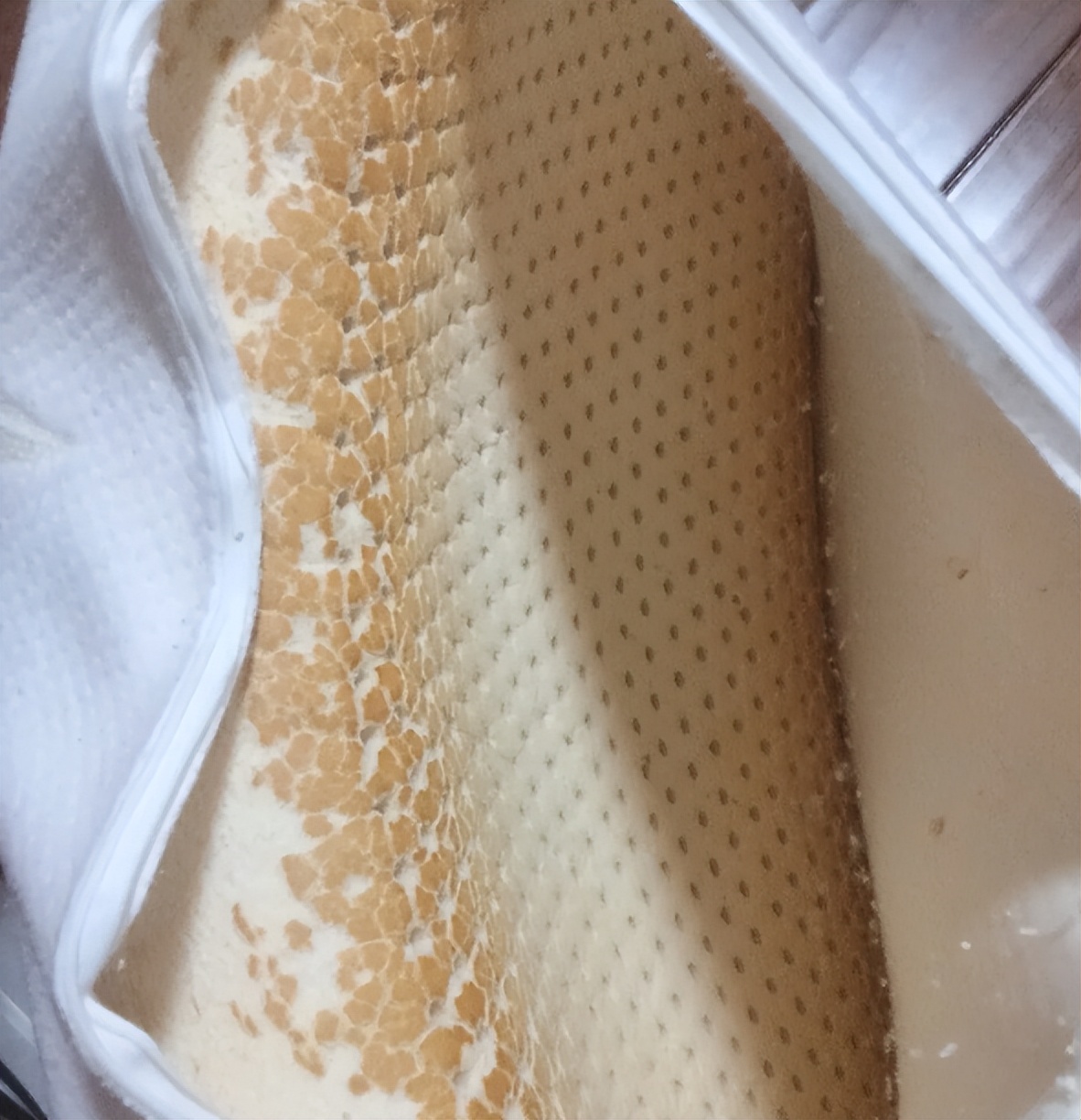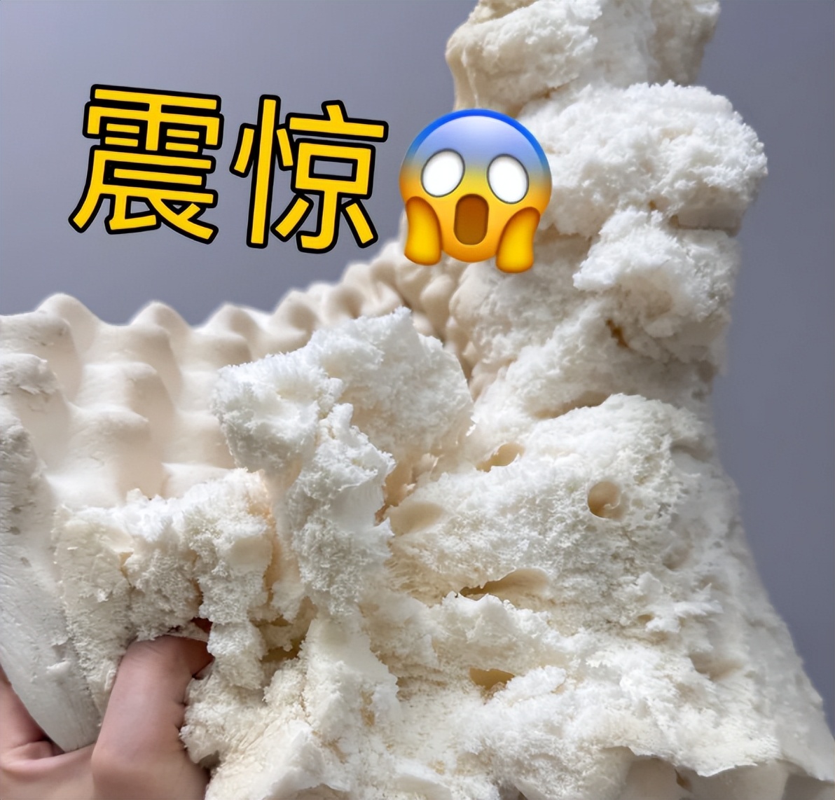 乳胶枕发黄了之后里面的质地就会变得很脆弱,轻轻一撮都会掉渣了,