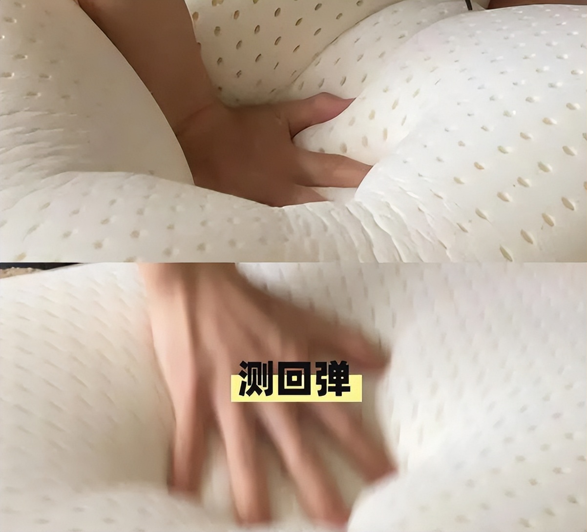 买乳胶枕之前,可以自己动手摸一下,若发现乳胶枕软硬适中,当你用力按压后回弹很快,这睡眠乳胶枕的质量很不错。