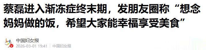 中国妇女报——蔡磊进入渐冻症终末期,发朋友圈称“想念妈妈做的饭,希望大家能幸福享受美食”