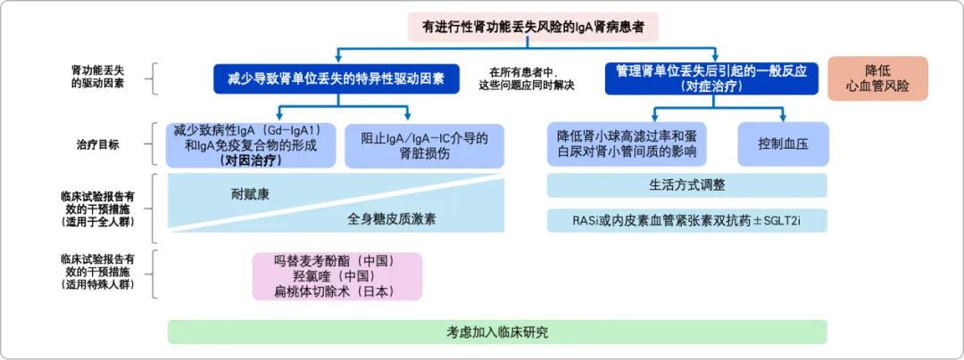 新版指南首次提出,对于存在肾功能进行性衰退风险的IgA肾病患者,治疗时需要同时关注由特异性因素(免疫因素)导致的肾单位损失,以及由此引发的慢性肾脏病(CKD)进展。