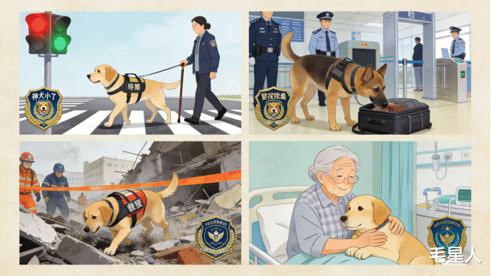 拉布拉多寻回犬的高智商、强服从性和出色的身体素质,让它们在众多工作领域都展现出卓越的能力,成为人类不可或缺的得力助手。从服务残障人士到参与公共安全,它们的身影无处不在,用行动诠释着"工作犬"的价值。