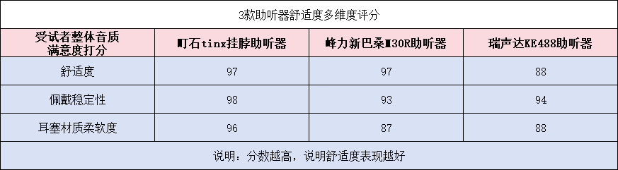测评方法:本次测试,我设置了两小时静音读书测试和两小时家务活动测试,然后体验三款助听器在静态与动态下的佩戴状态,最后从贴合度、佩戴舒适度和耳帽柔软度三项指标进行对比打分。