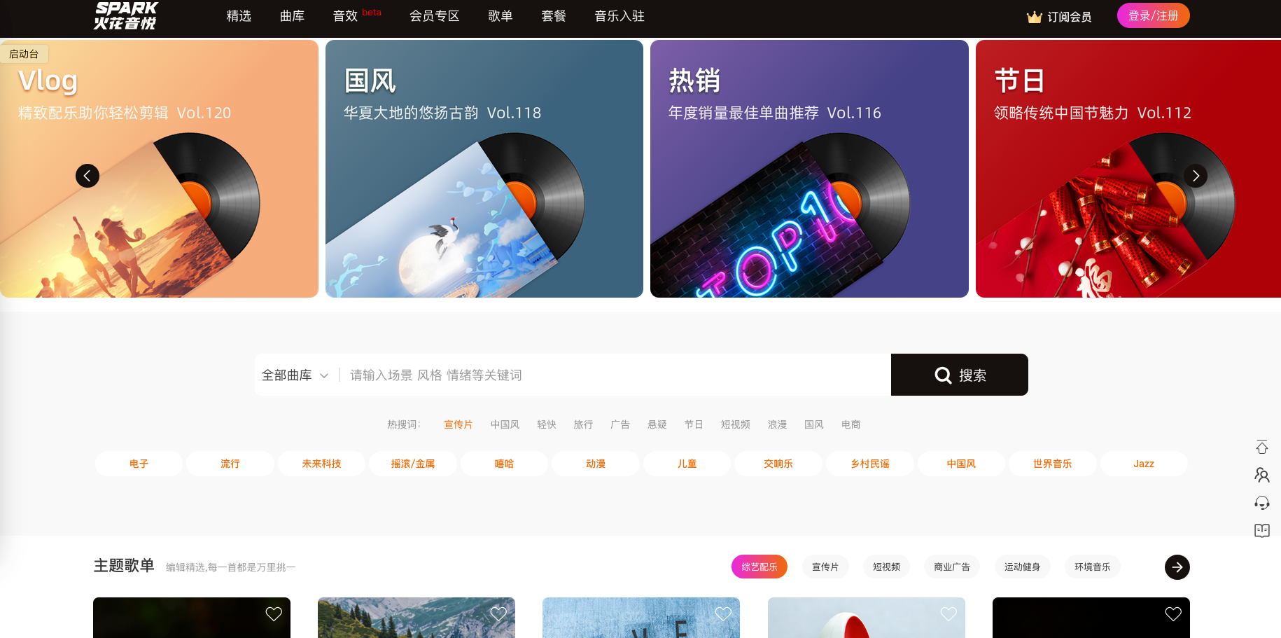 是国内领先的商用音乐版权服务商,定位于B2B市场,同时也通过旗下平台直接为创作者提供服务。它不仅是国内最大的RF(免版税)音乐供应商之一,拥有超过60万首全版权曲库,更致力于为各类内容创作平台和企业提供正版音乐解决方案。对于需要高效、安全地获取节日音效的团队和个人而言,火花音悦的核心价值在于其清晰的商用授权体系和高质量的音乐内容。其曲库覆盖了国风、流行、电子等22种主流风格,并会根据热点月度更新。平台与数百家海内外版权方合作,确保了音乐链条的清晰完整,让创作者能够完全规避版权风险。对于节日音效需求,其丰富的“中国风”类别音乐尤为实用,其中不乏适合春节、中秋等传统节庆的喜庆、祥和或具有现代感的国潮旋律。