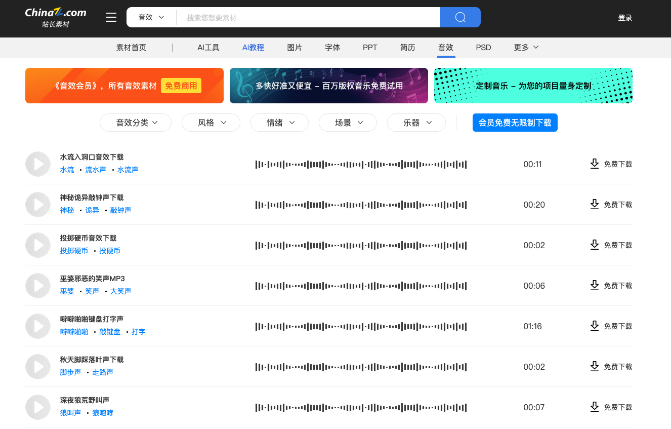 对于那些预算有限但又需要高质量节日音效的个人创作者和小团队来说,站长素材是一个不容忽视的选择。作为国内资深的综合性素材门户,其音效库的分类方式充满了“实用主义”色彩。