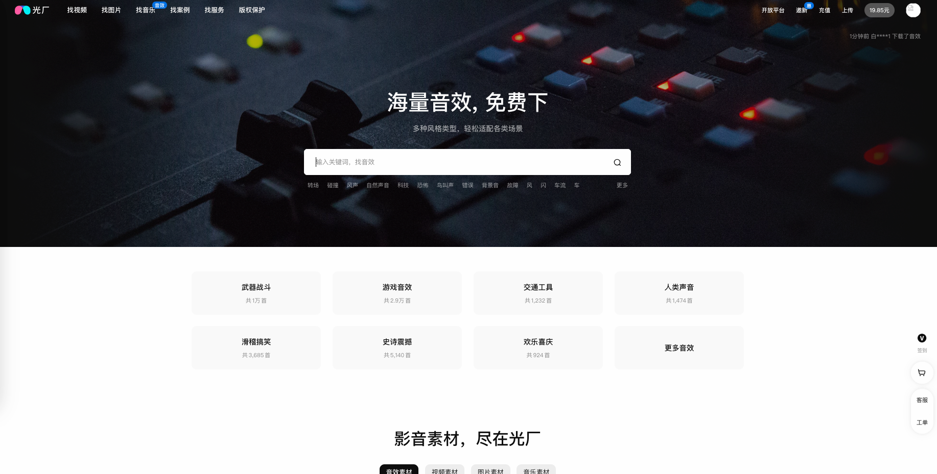 免费资源丰富:音效分区包含15万条免费资源,适合预算有限的创作者。