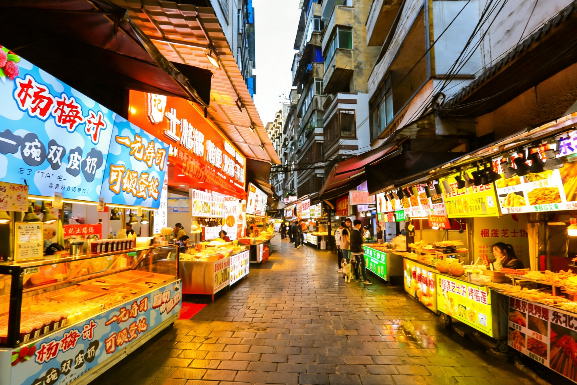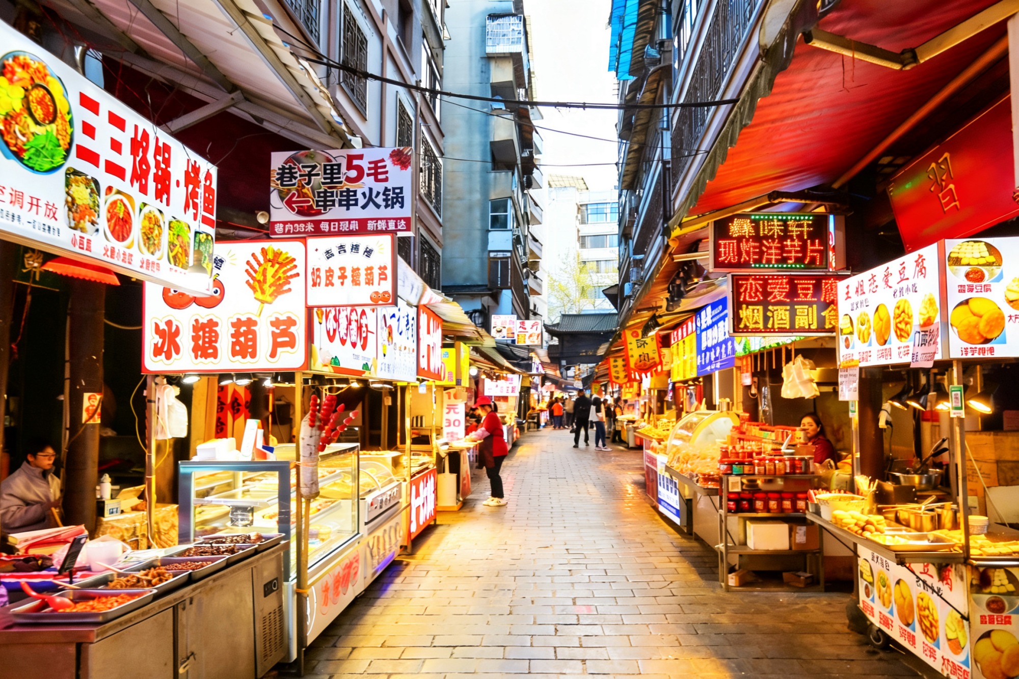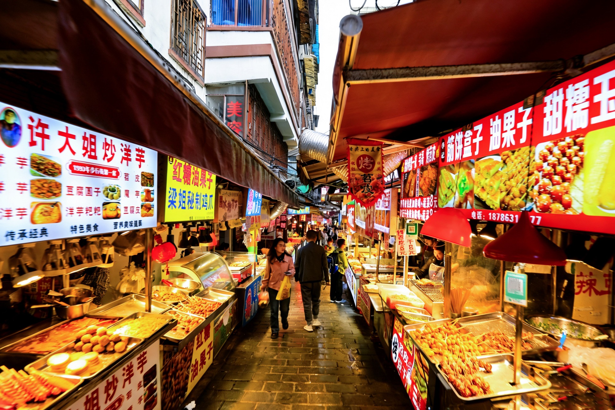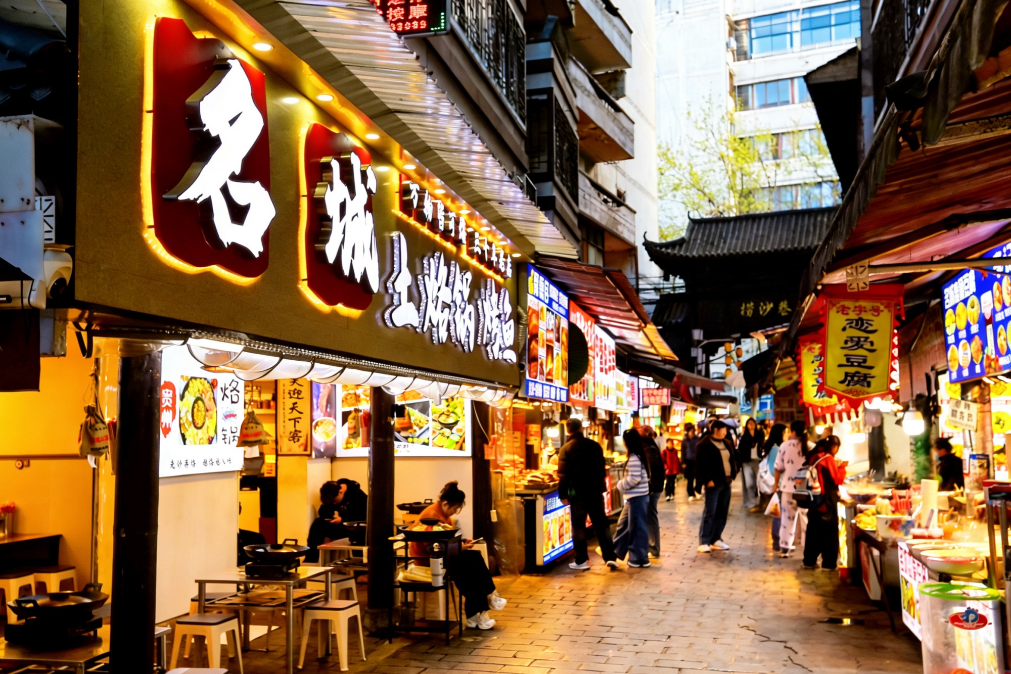 主街两侧又分出许多小支巷,每一条小巷里同样藏着“人间绝味”,烤鱿鱼、钵仔糕等勾引着肚里的馋虫,还有来贵州一定要吃的烙锅,现吃现点,香气四溢。