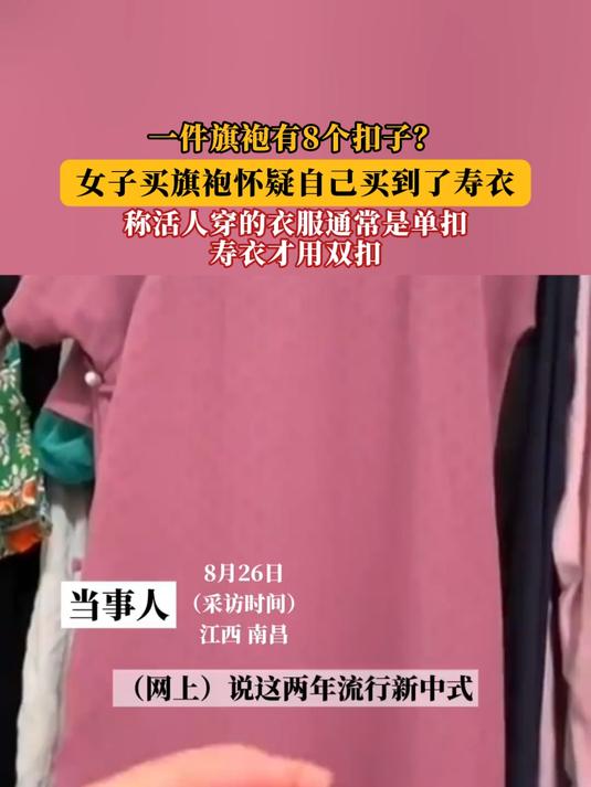 姐妹们!谁懂啊!江西南昌一位小姐姐在2024年网购了一件“美美哒”旗袍,结果2025年一翻衣柜,差点被自己“吓出PTSD”——8个扣子+胸部开扣+面料僵硬,直接触发“寿衣警报”!