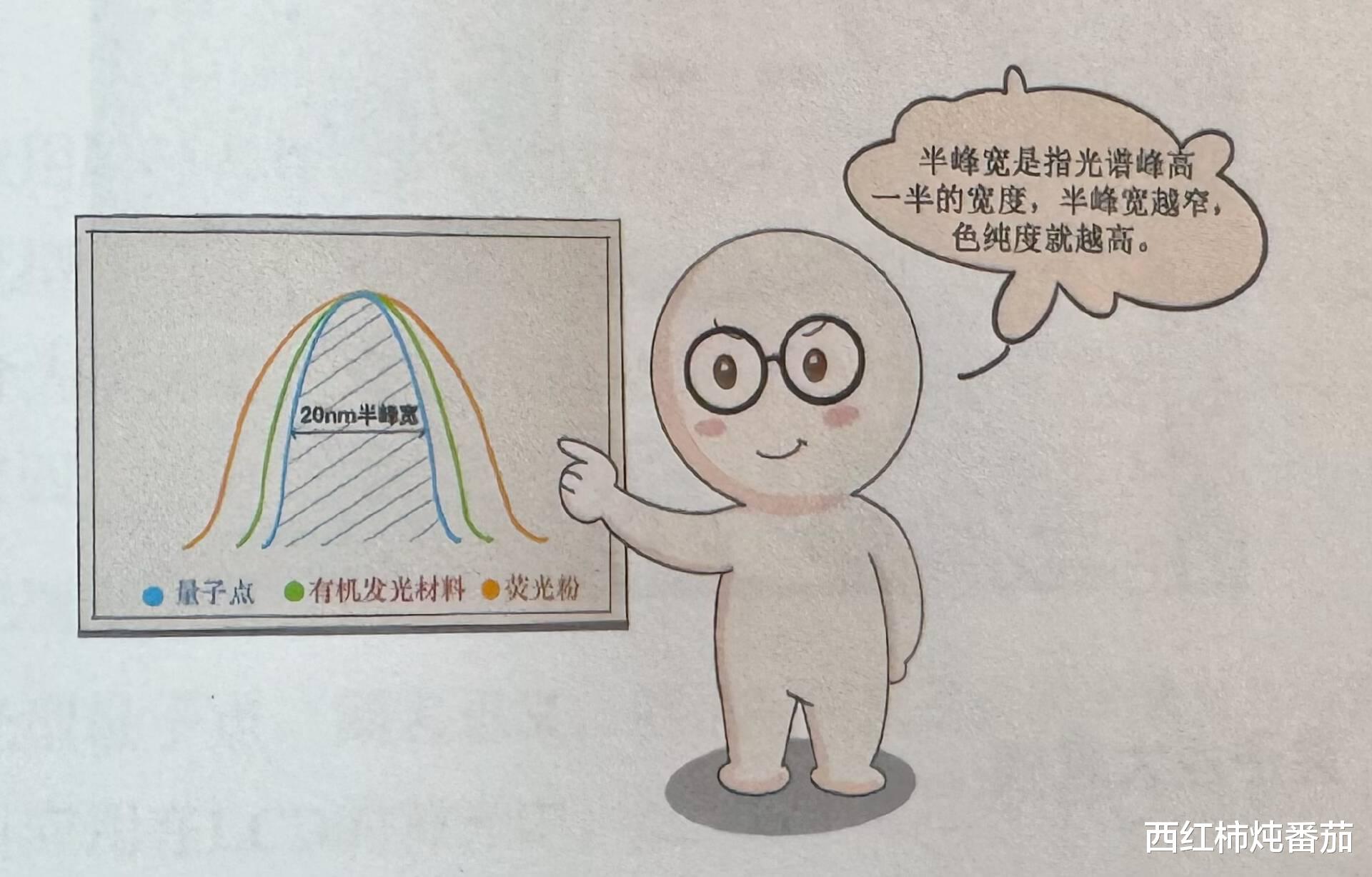 前缀「QD」是「量子点」的意思。当量子点晶体的颗粒足够小(10nm以下)时,就会形成不连续能级结构。电子从高能级向低能级跃迁,就会发光——这是量子点的发光原理。量子点的最大优势是能将吸收的能量几乎无损耗地转化为单一、纯净的光,实现了极高的量子产率。因此,用量子点取代传统 LED灯珠作为背光光源,可以大幅提升电视峰值亮度和色彩准度(色准)。