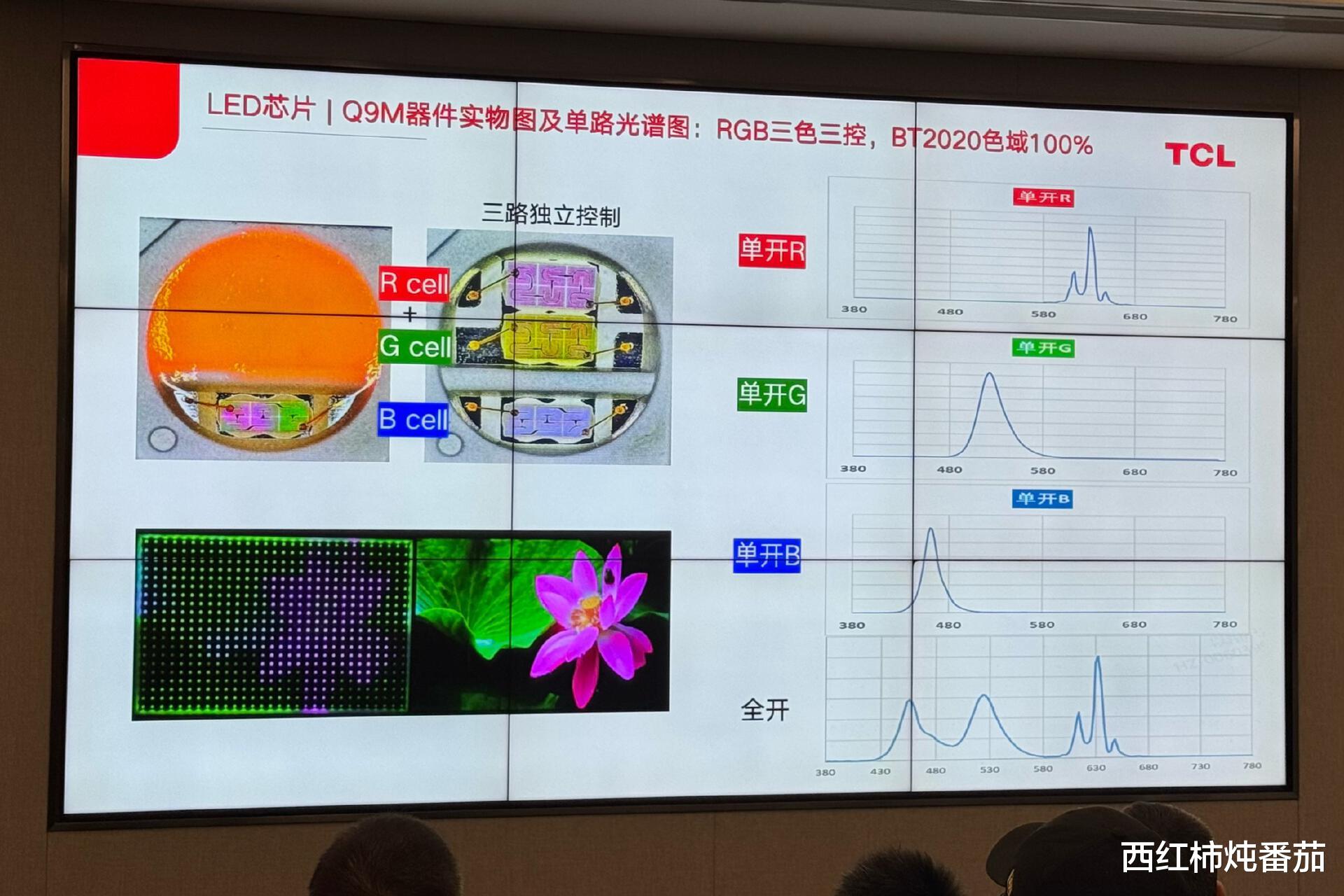 为了能够让通过彩膜后的色彩更加纯正,于是就出现了用三原色灯珠作为背光源的技术方案,以此来提高色准,于是就有了RGB-Mini LED技术 ▲