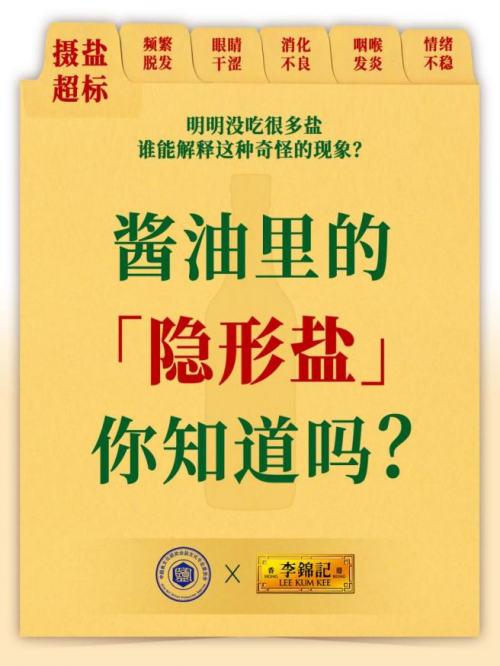 控制饮食是控盐的有效途径,但减盐饮食摄入不单单是少吃盐,食用酱油也是摄入盐分的主要渠道之一。如果选错酱油,很可能在烹饪过程中摄入过量“隐形盐分”。