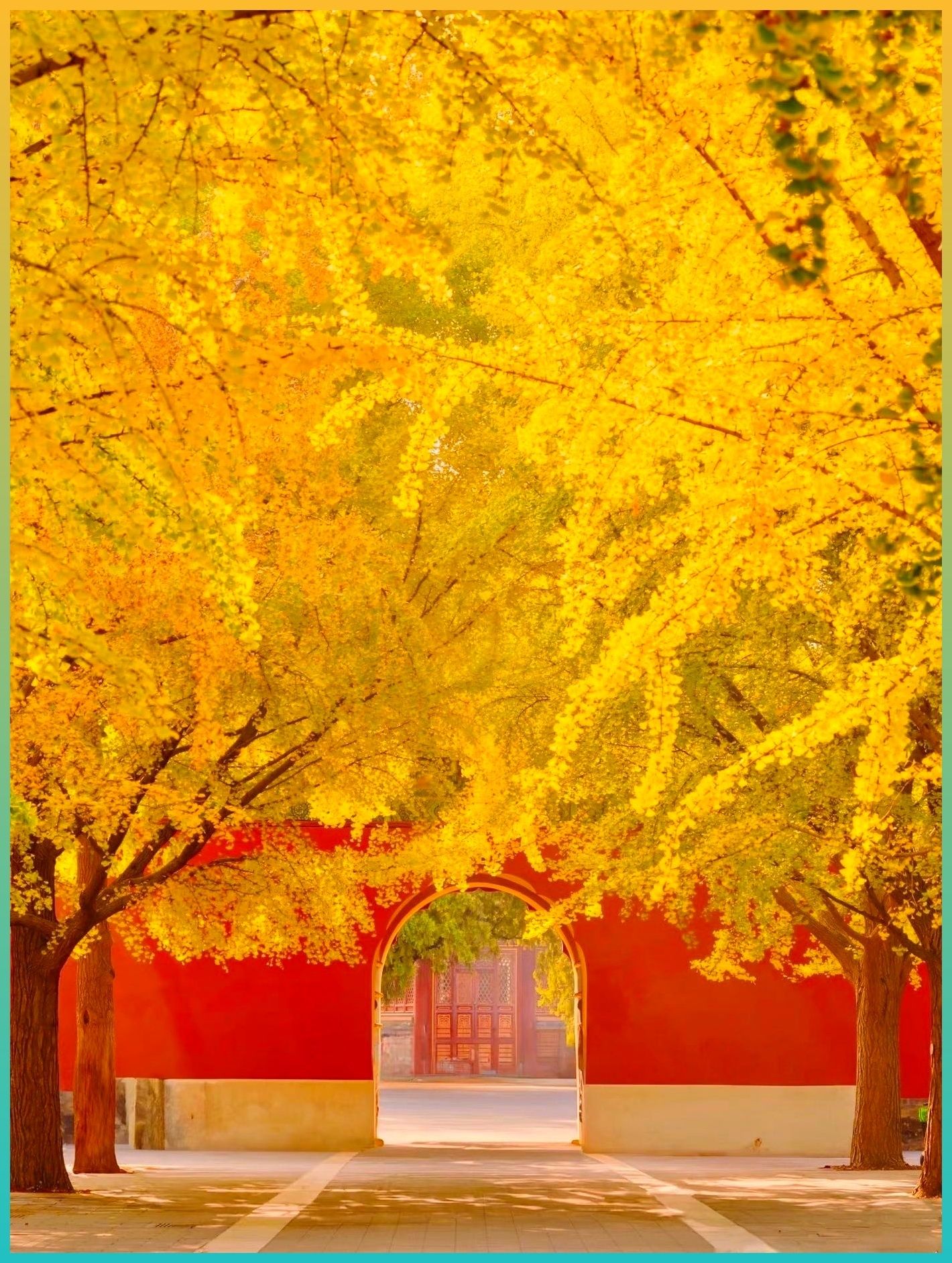 皇家园林的秋色美到极致,银杏大道如梦如幻