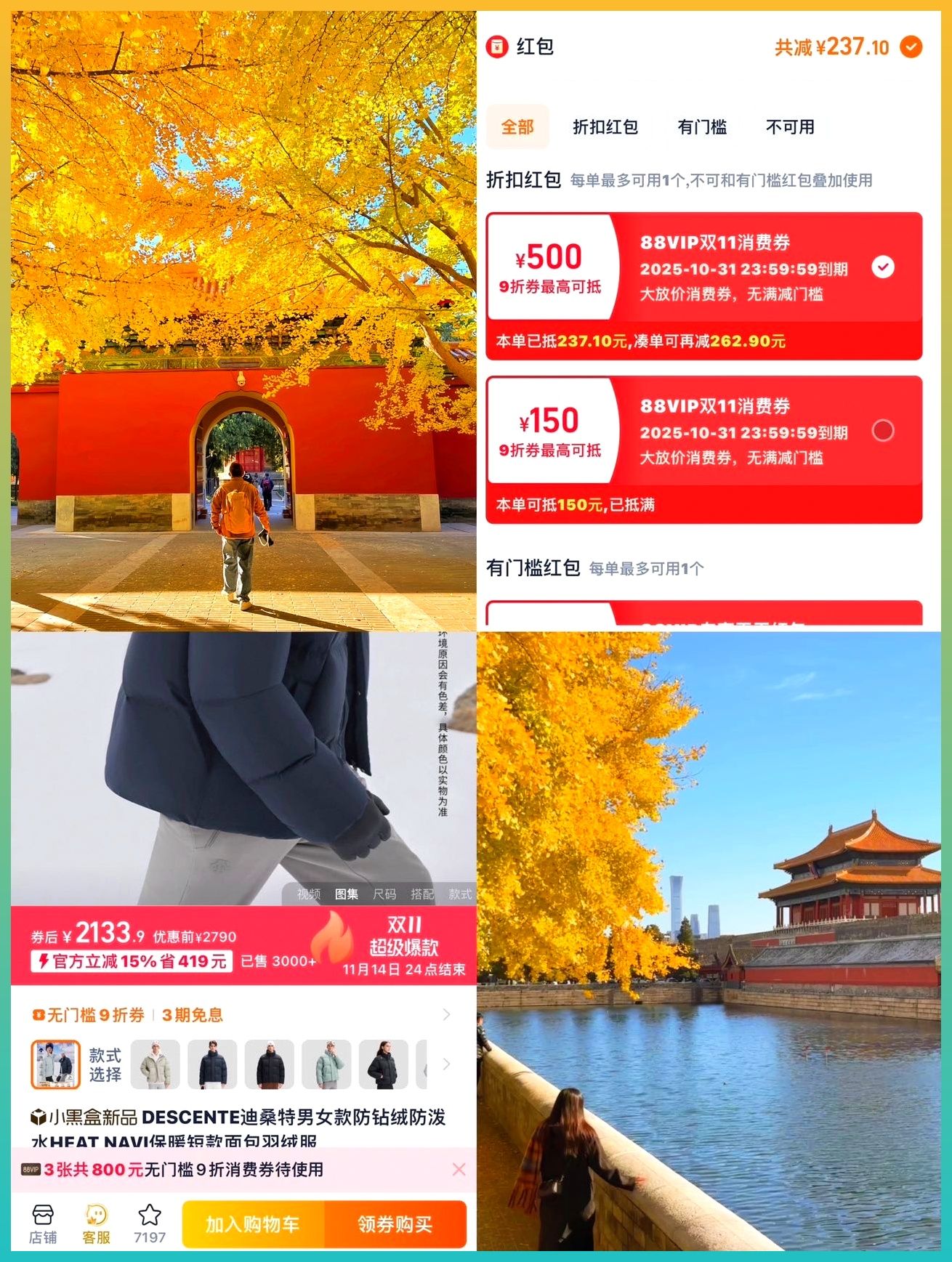 秋日美景+双十一购物,一站式满足秋天美景已值回票价——但别忘了,11月还有双十一!赏景之余,顺便把购物车清一清,人生双重快乐!