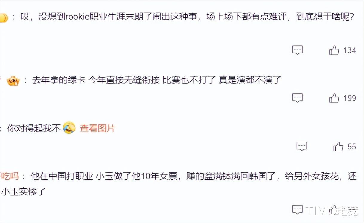 还有网友犀利吐槽:嘴上说和小钰是人生规划不同分手,转头就和韩国网红热恋,合着规划就是找个韩国女友回韩国呗;Doinb都能靠这事逆袭成好男人,可见Rookie这波操作多离谱。更有网友锐评:不打比赛在这里泡妹,让meiko当队长来背锅!去年拿的绿卡,今年直接无缝衔接,比赛也不打了,真是演都不演了;他在中国打职业,小钰做了他十年女朋友;赚的盆满钵满回韩国了,小钰实在太惨了!
