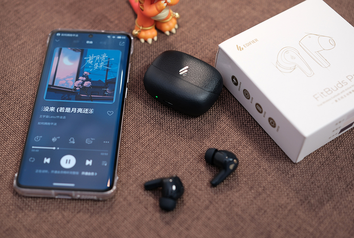 FitBuds Pro在外观设计上延续了漫步者一贯的简约风格,黑色调调低调奢华,给人一种沉稳而不失时尚的感觉。外壳采用皮革纹理设计,手感细腻,不仅防滑耐磨,还能有效防止指纹残留。耳机本体采用了人体工程学设计,佩戴舒适且稳固,即使在剧烈运动时也不易掉落。