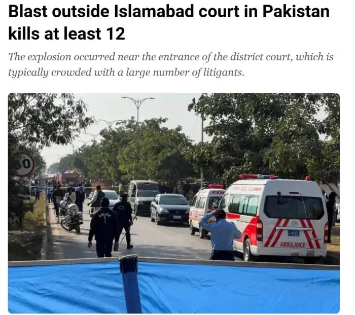 就在印度总理莫迪的政府仍在调查周一晚间新德里爆炸案的原因时,11月11日中午,巴基斯坦首都伊斯兰堡地方法院附近发生自杀式炸弹袭击。这次爆炸造成至少20人死亡,多人受伤的惨剧。