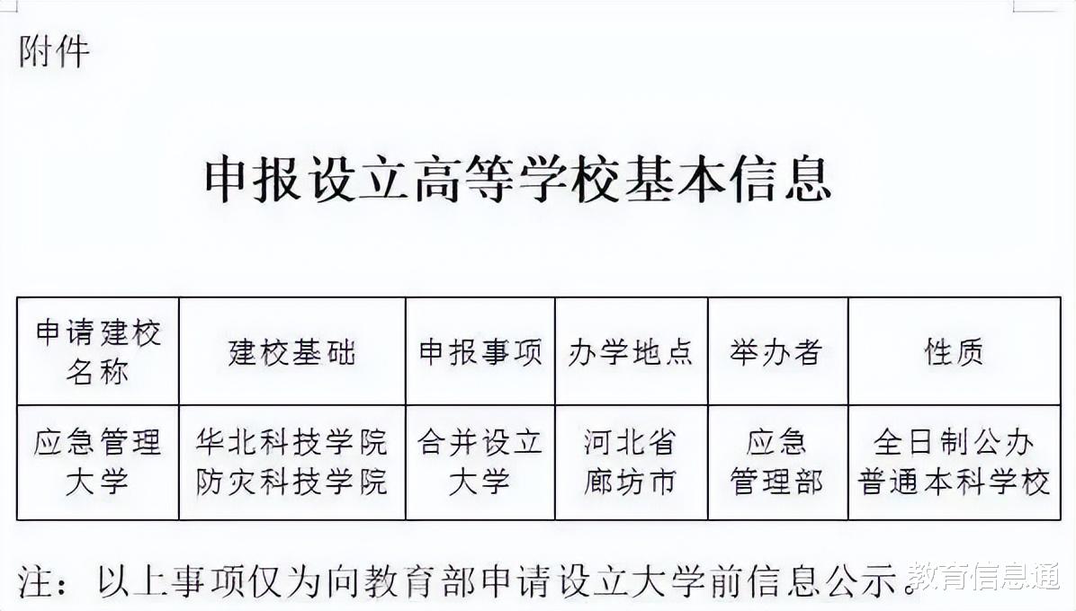 2023年5月,应急管理部官网发布《关于高等学校设置事项的公示》,拟向教育部申报设立应急管理大学。