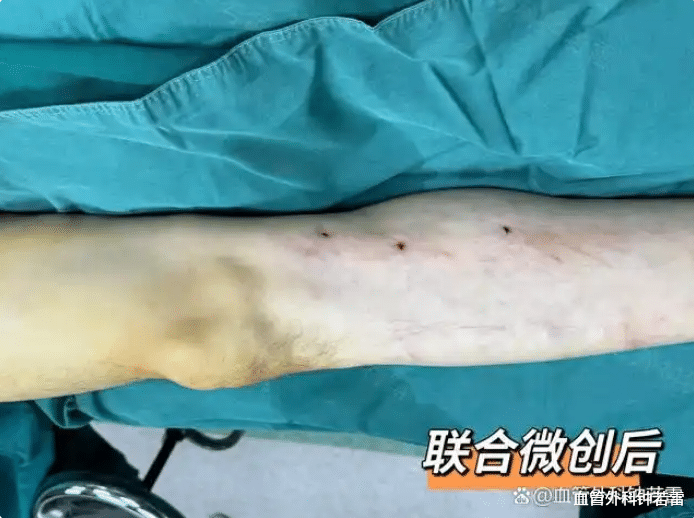 和传统的静脉剥脱手术相比,联合微创手术的优势十分明显:全程在USG(超声)引导下进行,能精准定位病变血管,避免损伤周围正常组织;