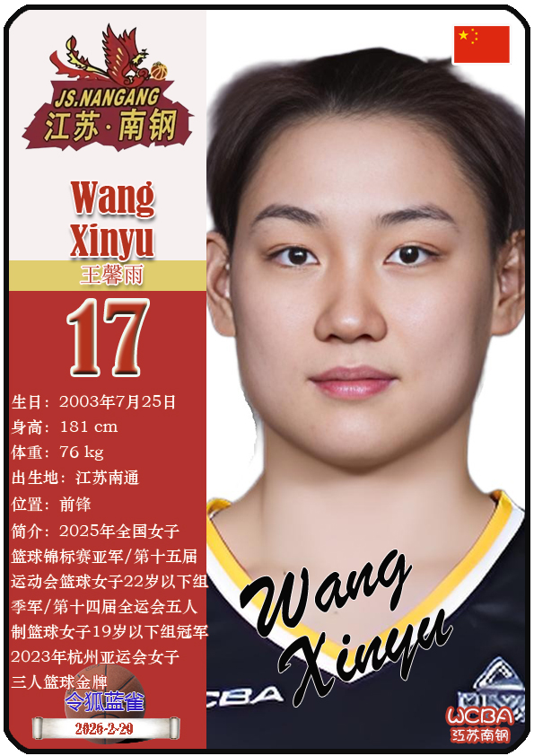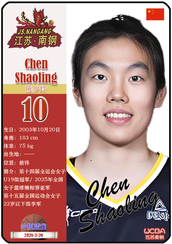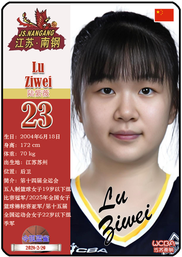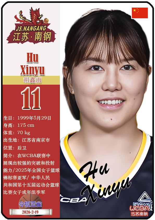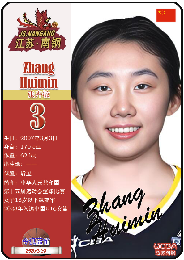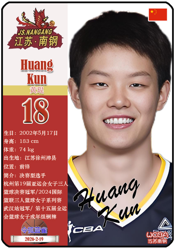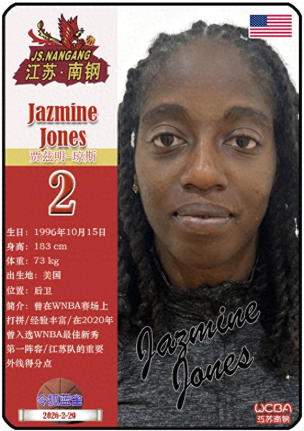 江苏省女子篮球队成立于1953年11月,距今已有73年历史。截至2026年2月20日,球队主教练是陈晓佳,队内拥有球员贾兹明-琼斯、张卉敏、洪欣妍等。本期盘点目前WCBA江苏南钢女篮的13名球员(按球衣号码排序):