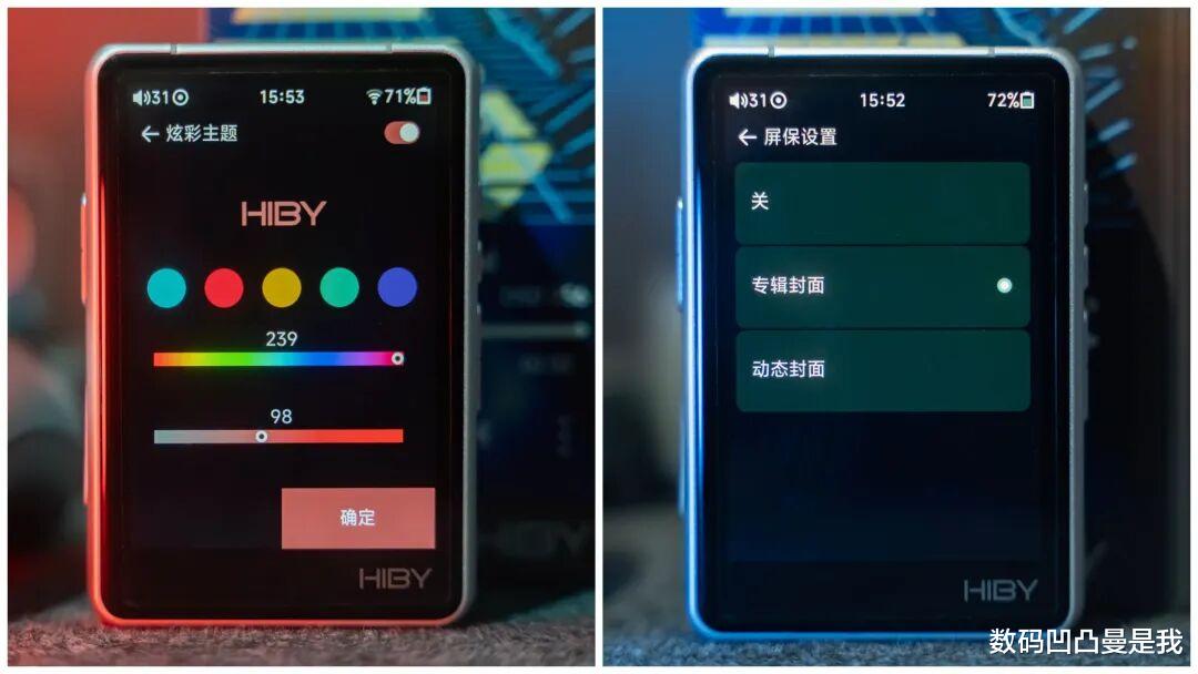 此外,屏保和系统主题也支持个性化设置。屏保可选择用专辑封面或自己喜欢的图片作为动态封面,主题除了暗夜和浅色两种风格还可自主调节炫彩风格,可玩性非常高。
