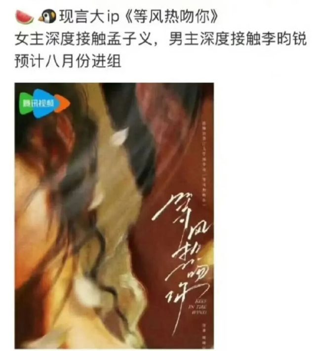 有瓜主爆料,现代爱情剧《等风热吻你》正在深度接触孟子义和 李昀锐 ,且预计八月份进组,角色设定为明艳女明星X禁欲男法医。