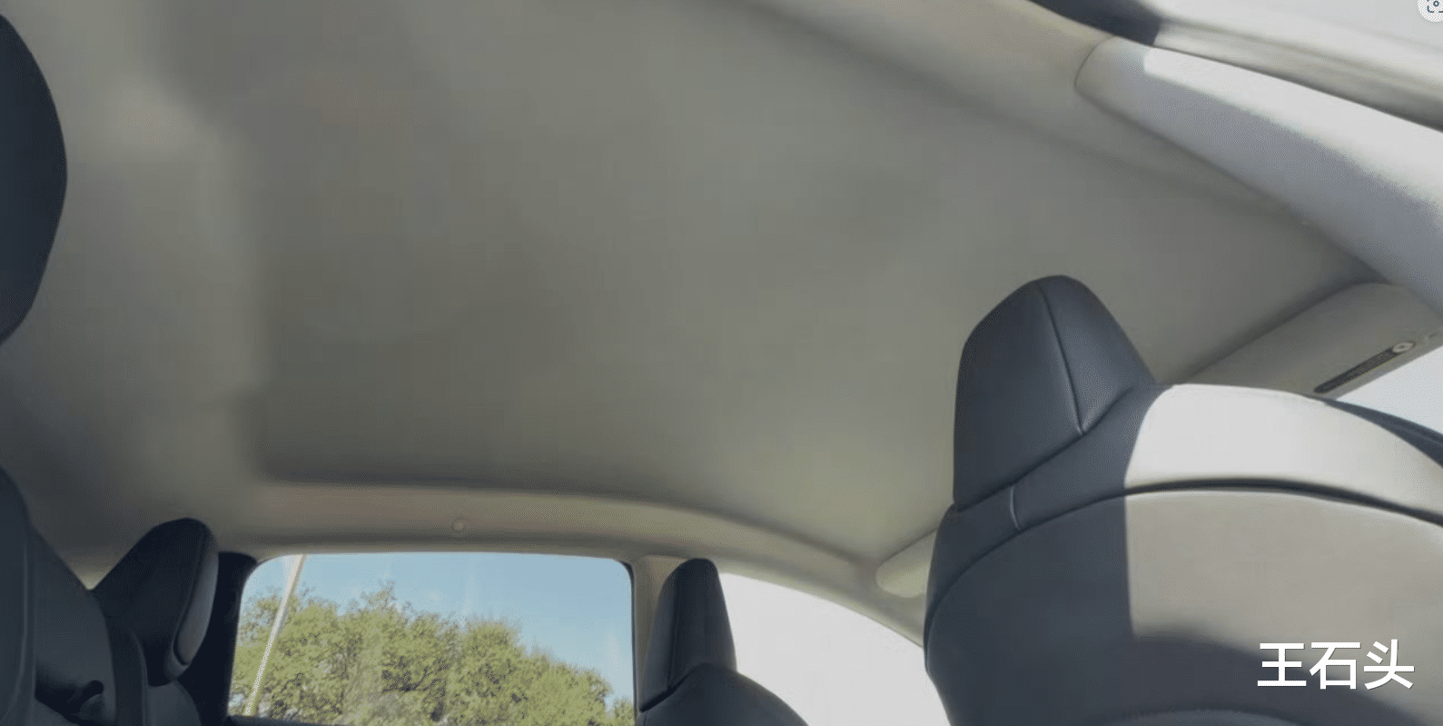 车顶虽然仍然是玻璃,但内部直接用布料装饰起来了,特斯拉称主要是量产了大量的玻璃天幕,所以成本并不高,安装也容易,还能省掉一部分油漆。