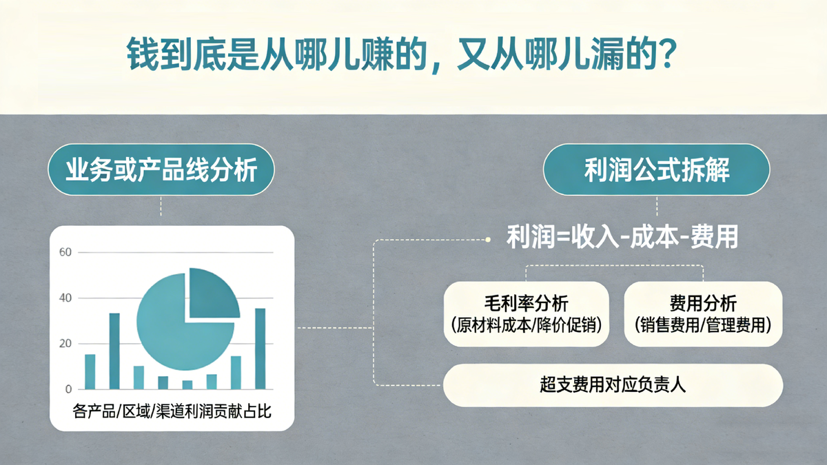 第二步:拆开来看——钱到底是从哪儿赚的,又从哪儿漏的?