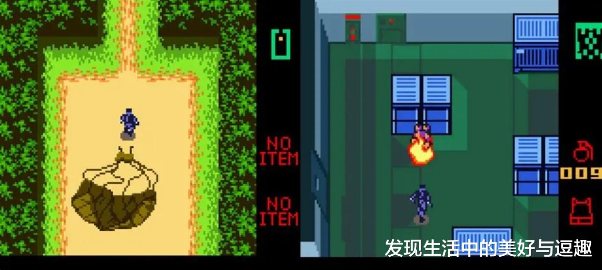 像素方块的斯内克可以做到匍匐前进,贴墙移动、敲墙吸引敌人、行走时踩到金属的篦子也会吸引敌人前来。抽雪茄显示红外线等等这些细节都在这台小小掌机上实现了。