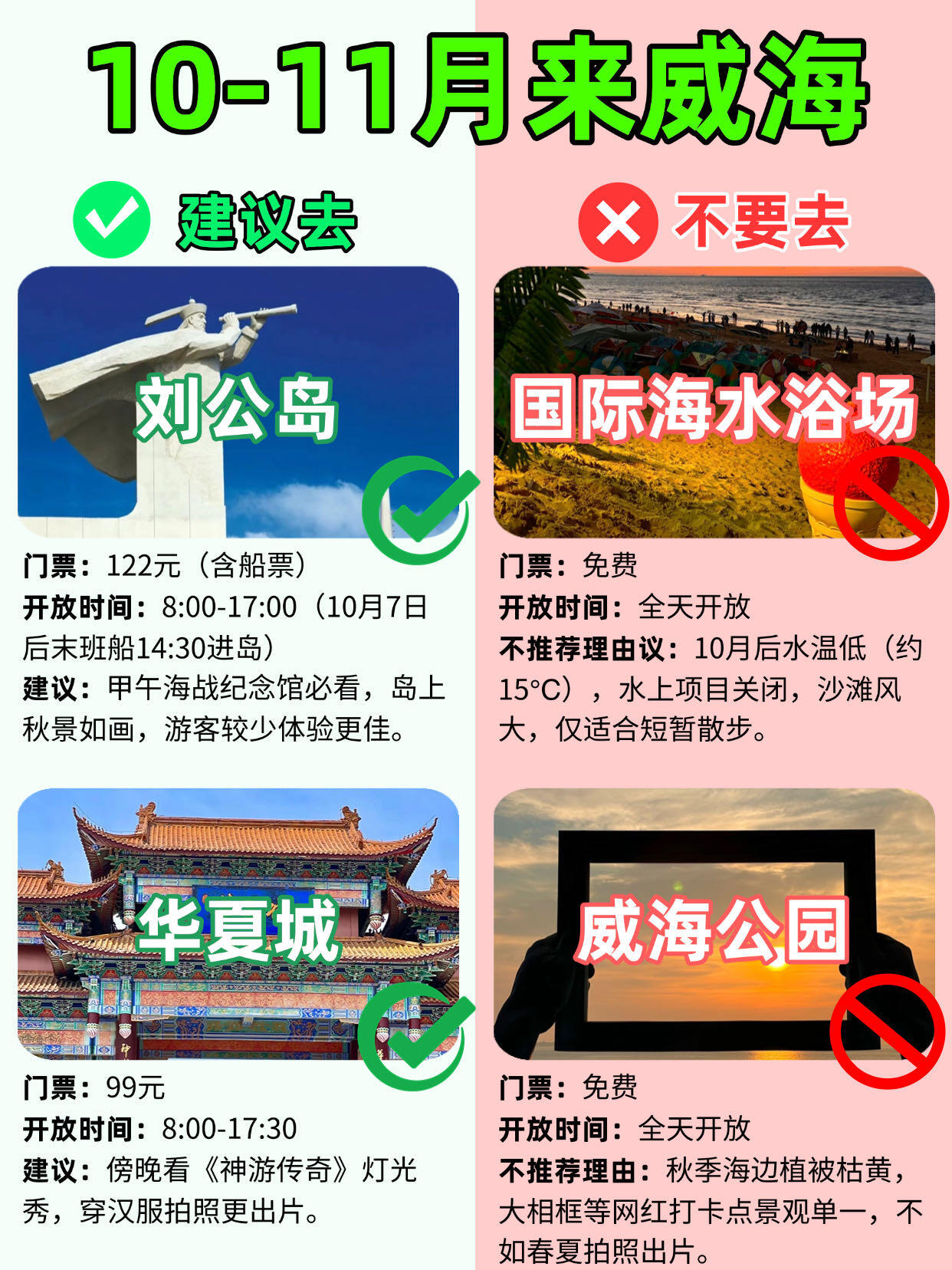 1. 🌊 刘公岛:122元(含船票),7:10-18:30,提前1天约,看甲午战争博物馆