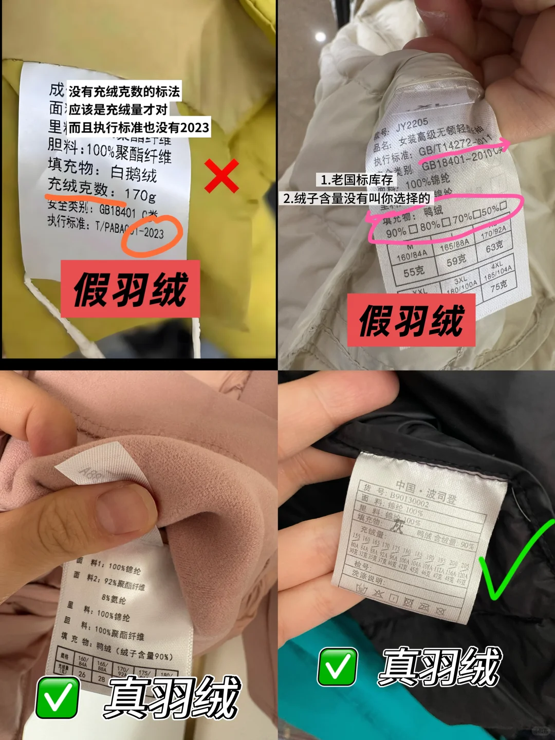 都说一分价钱一分货,可有些时候当你花了几千买回来的羽绒服,拆开一看才知道并不是真正的羽绒做成的,所以大家一定要学会识别标签,警惕起来。