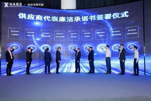 大会上,为进一步构建廉洁供应商生态链,营造透明公正、廉洁守信的供应环境,构建亲而有度、清而有为的新型营商氛围,深铁置业纪委开展廉洁宣言及供应商代表签署廉洁承诺书,着力构建“亲”“清”型合作关系新生态,共建廉洁诚信、合作共赢关系,搭建“阳光合作”生态链,推动城市住房“质”的跃升,为深铁置业高质量发展保驾护航。