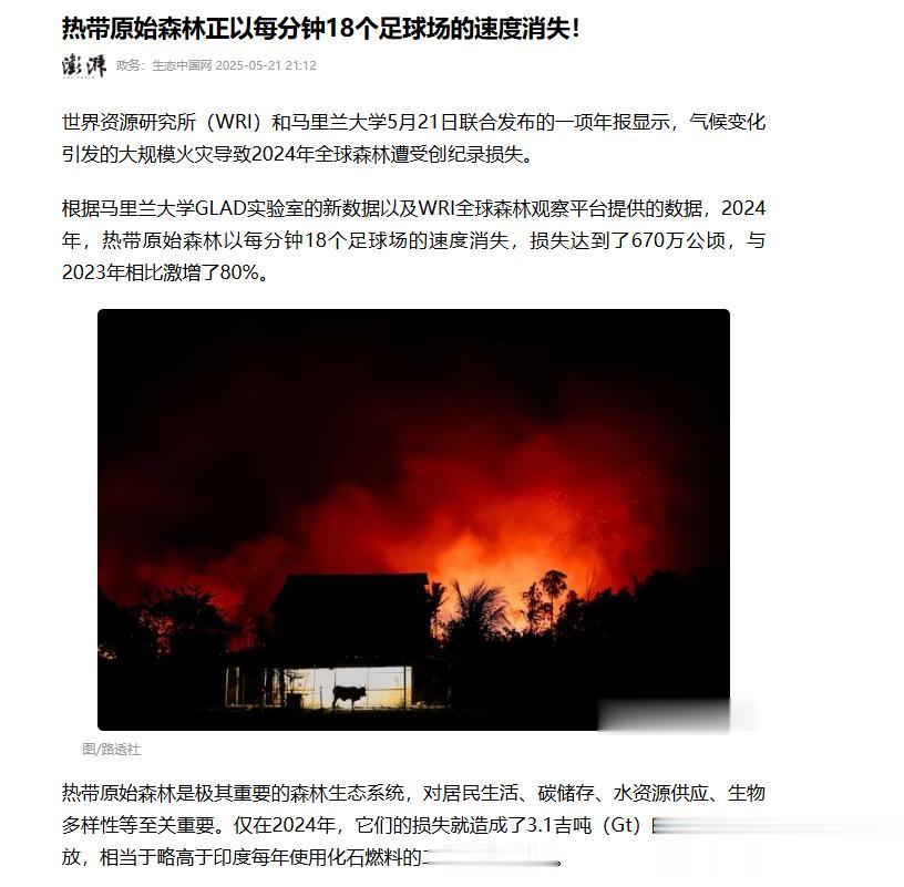 去年全球山火烧毁了至少600万公顷森林,按国际标准足球场计算,相当于每分钟消失快20个足球场,进一步加剧了恶性循环。