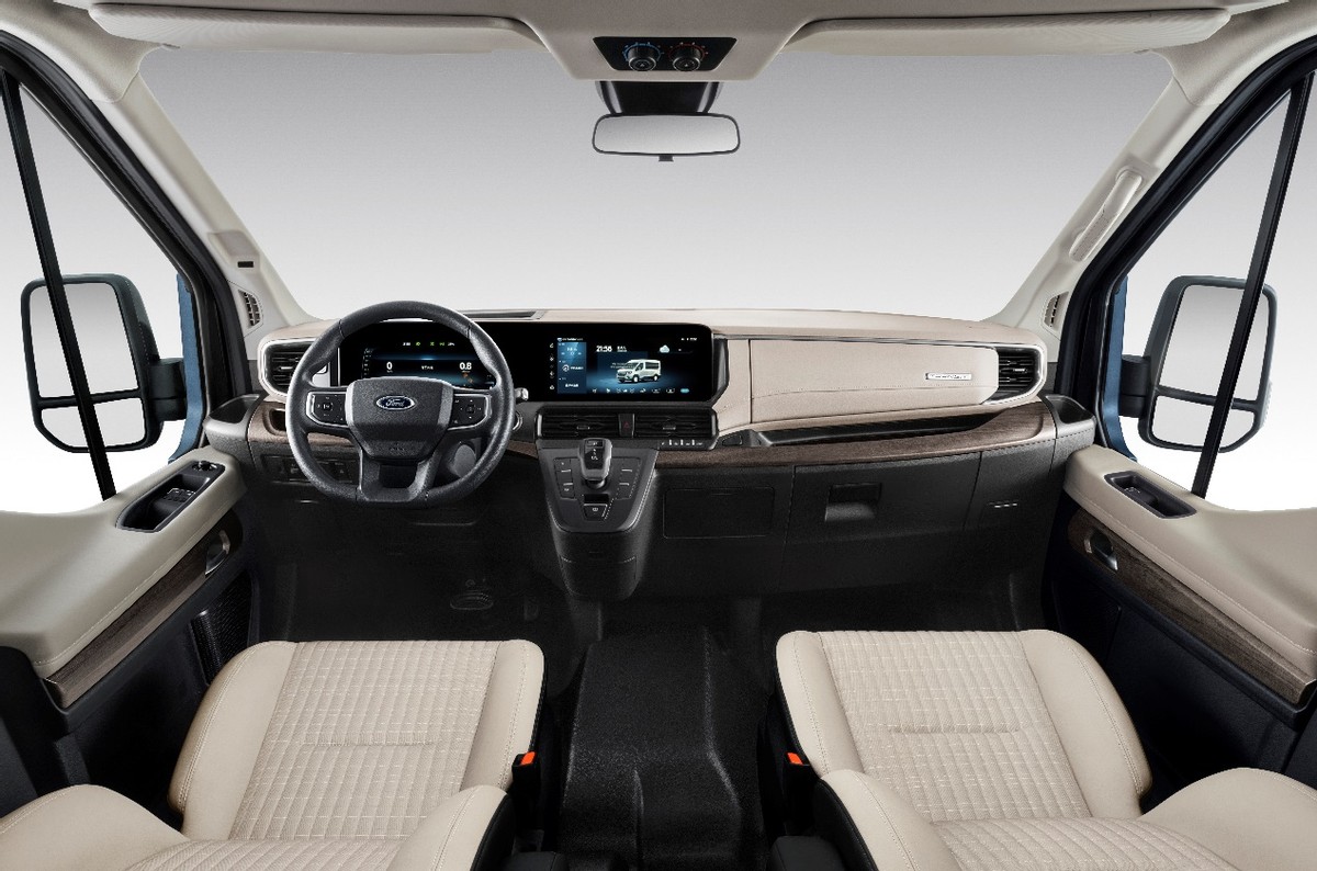 舒适驾乘,以人为本:作为一款高端物流车,江铃福特全顺T8在追求高效运输的同时,注重驾乘体验。其内饰设计豪华舒适,座椅布局合理,配备了360度AVM环景影像、座椅加热、方向盘加热、主驾座椅8向调节(全系标配腰托)、智行App远程启动空调等多项人性化配置,以及多项静音技术,整车怠速噪音46dB,营造一个温馨舒适的驾驶空间,减少驾驶疲劳。