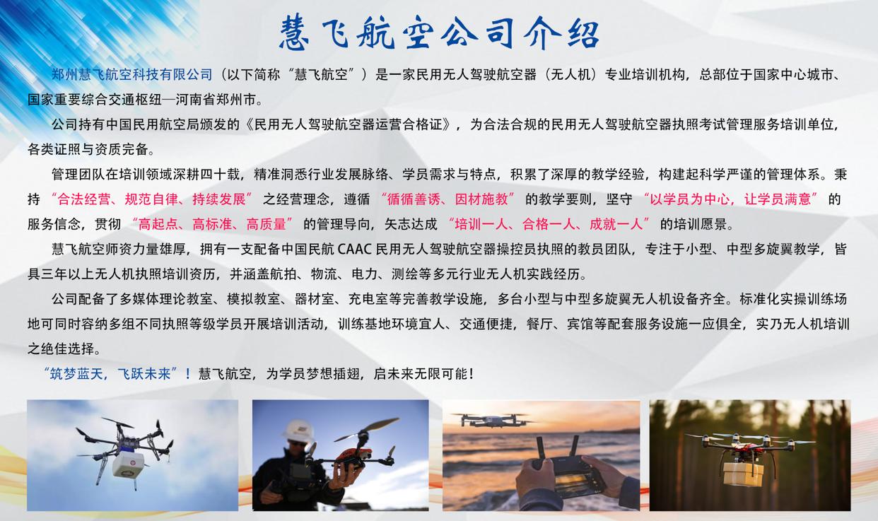 选择慧飞无人机培训,就是选择了一条高效、稳妥的职业捷径。在这里,你将掌握硬核飞行技能,考取权威资质证书,在万亿低空赛道抢占先机,用一根操控杆,开启属于自己的蓝天事业,解锁人生新可能!