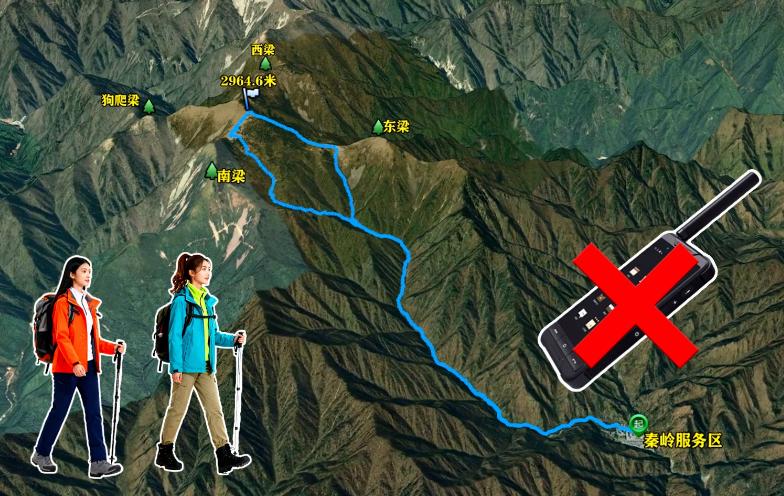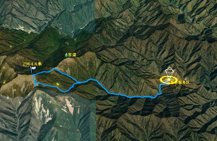 东梁常规徒步路线是从秦岭服务区出发,前往海拔 2964.6 米的梁顶,往返距离约为 21 公里,只需要 1 天时间就能完成穿越,所以对时间不充裕的人来说非常友好。