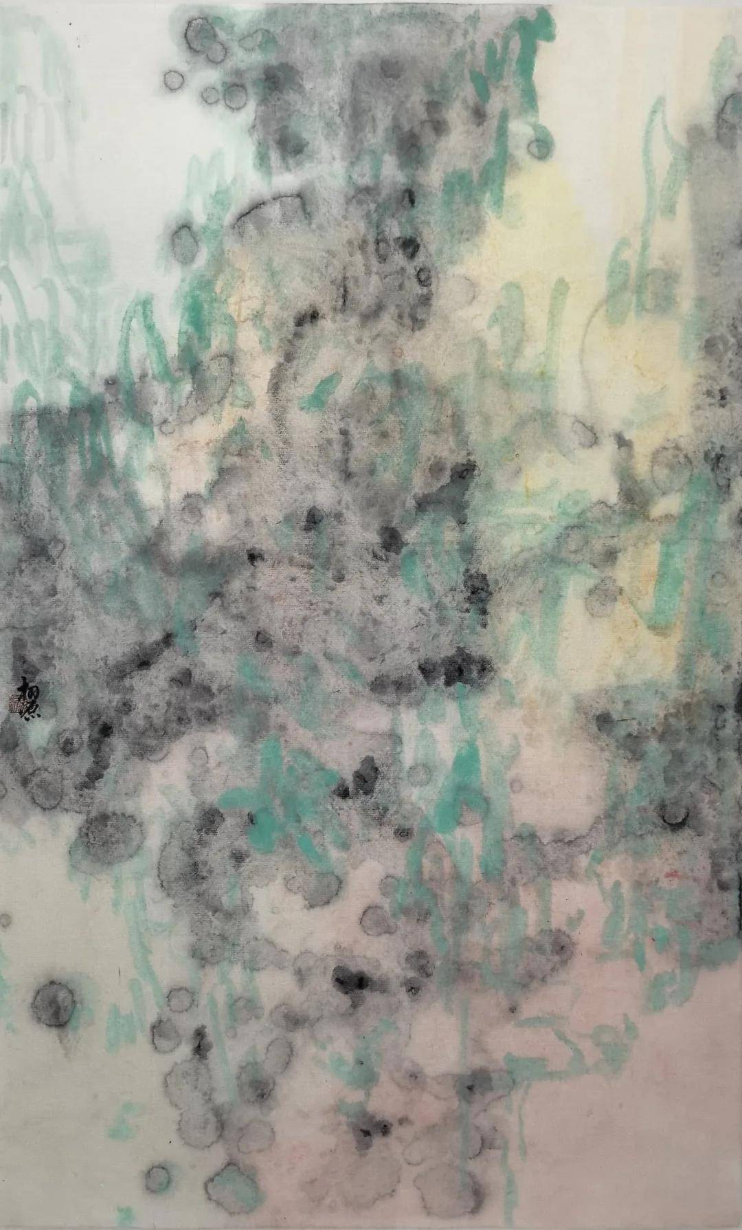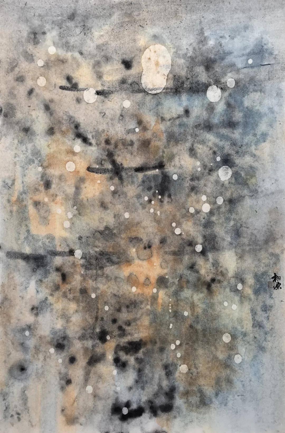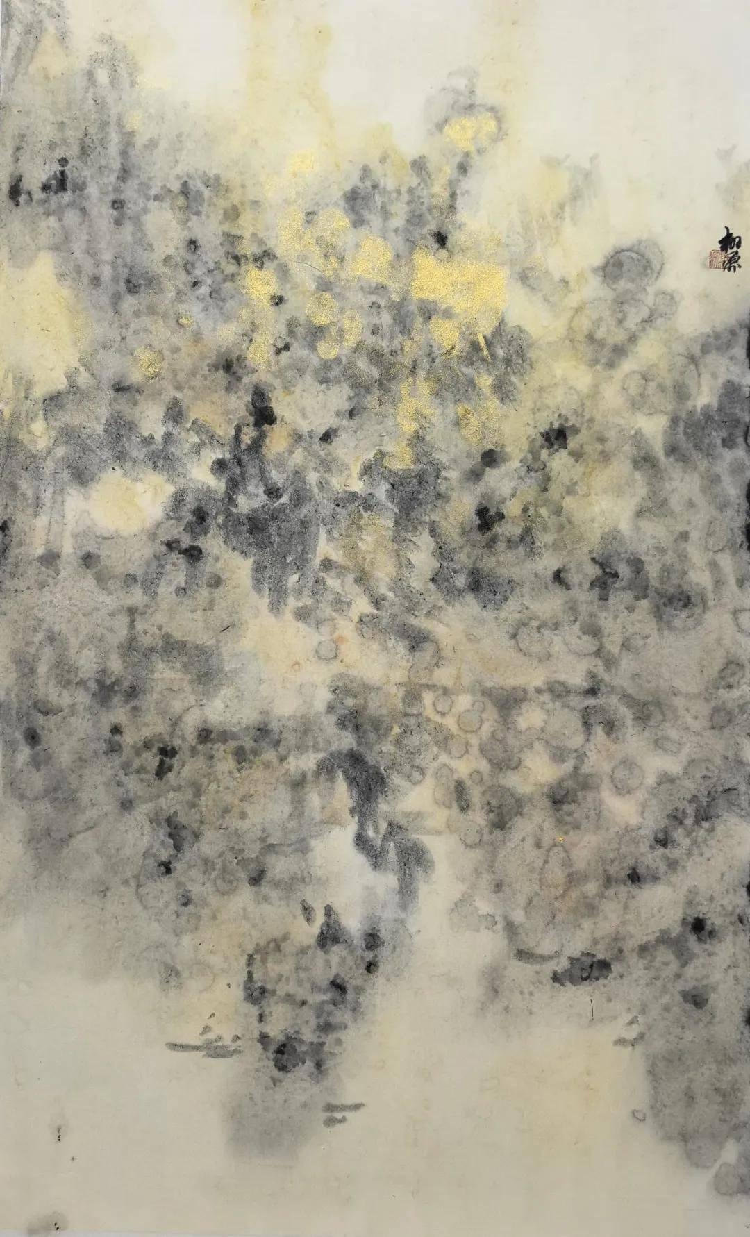 这篇散文最动人的地方,在于两代人的记忆共鸣。蓉儿眷恋的是有外婆相伴的东窑港,那是她全部的童年与温暖;而曹广先生听着听着,恍然看见了自己的童年,想起了那位曾教他执笔、如今早已不在的故人。这便是文艺作品中“共情”的最高境界:借他人的酒杯,浇自己的块垒。当画家最终落笔画《心象·东窑港》系列时,笔墨发生了奇妙的化学反应——现实与回忆、她与我、消逝与永恒,在宣纸上轻轻重叠,自然交融。他以当代水墨的先锋视角,突破传统笔墨范式,以写意抽象的语言重塑渡口心象,他画的已不只是蓉儿记忆里的木屋、藤蔓、柚子树,更是自己“再也回不去的旧时光”,是藏在岁月深处的温柔黄昏。