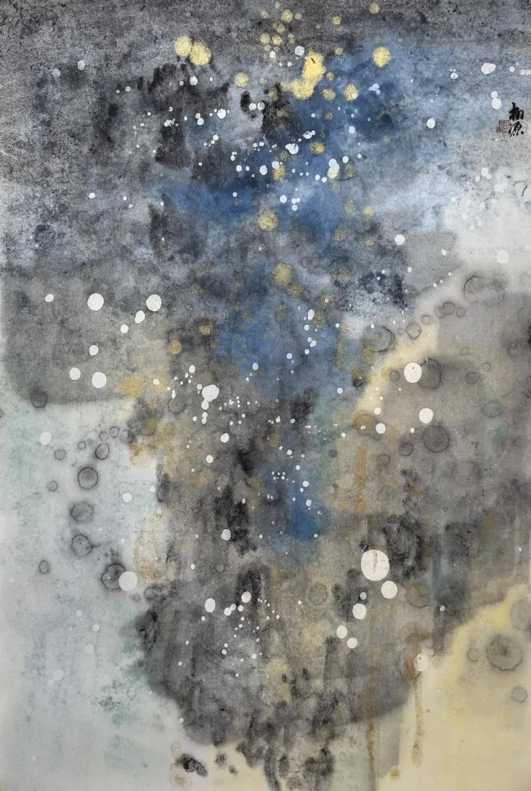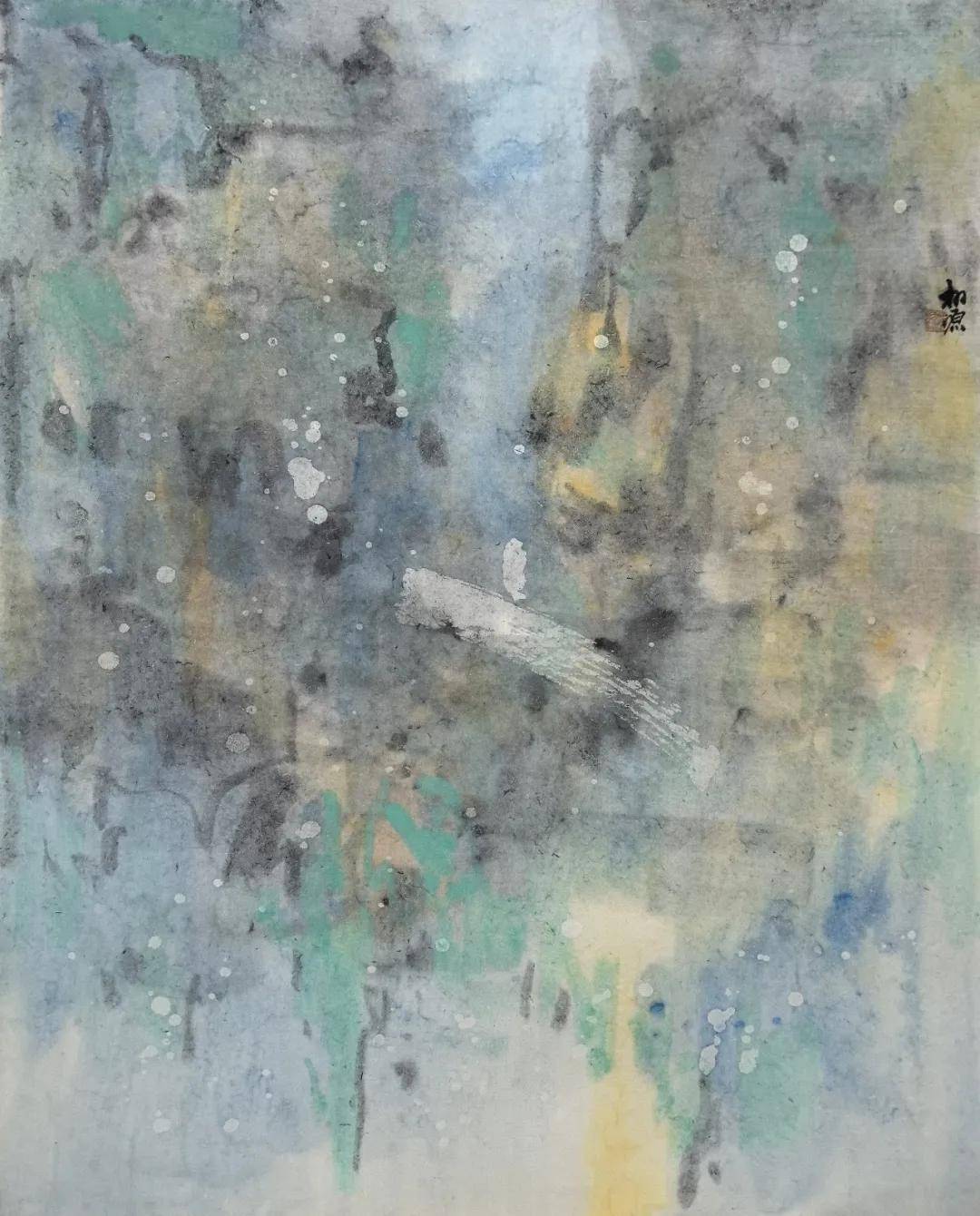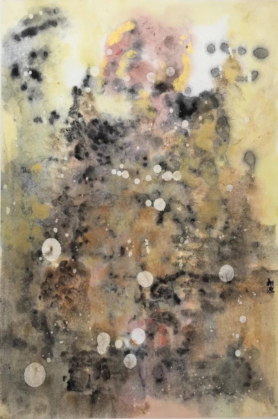 这篇散文最动人的地方,在于两代人的记忆共鸣。蓉儿眷恋的是有外婆相伴的东窑港,那是她全部的童年与温暖;而曹广先生听着听着,恍然看见了自己的童年,想起了那位曾教他执笔、如今早已不在的故人。这便是文艺作品中“共情”的最高境界:借他人的酒杯,浇自己的块垒。当画家最终落笔画《心象·东窑港》系列时,笔墨发生了奇妙的化学反应——现实与回忆、她与我、消逝与永恒,在宣纸上轻轻重叠,自然交融。他以当代水墨的先锋视角,突破传统笔墨范式,以写意抽象的语言重塑渡口心象,他画的已不只是蓉儿记忆里的木屋、藤蔓、柚子树,更是自己“再也回不去的旧时光”,是藏在岁月深处的温柔黄昏。