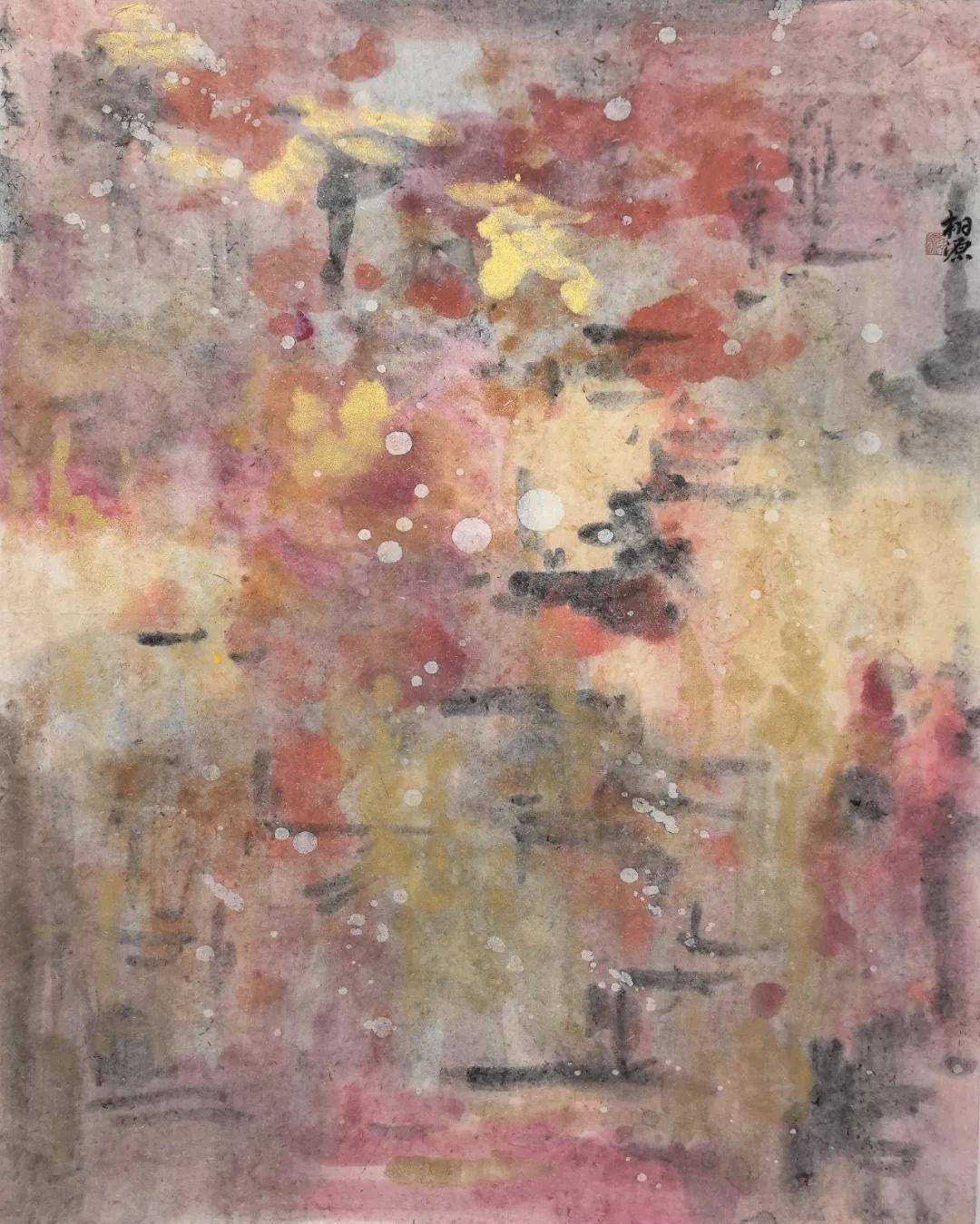 如今的东窑港,已然拆迁,即将改建成公园。那些老屋、那方水池、那两棵柚子树,都不在了。可蓉儿曾写下一篇文字,把童年的点滴一一记下。我读了又读,忽然生出一个念头:何不画一组《心象·东窑港》?用水墨,用抽象,用写意,用那些只可意会不可言传的笔意,把她记忆里的一切都画出来——那池水,那木屋,那丝瓜藤,那柚子树,那敲着石子的黄昏,那背着她的外婆的背影……