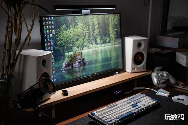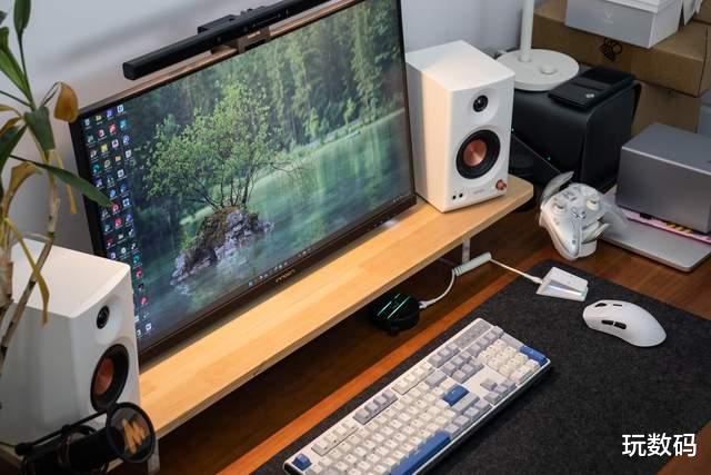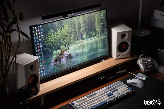 除此之外,它的光线特别均匀。从显示器下方到桌面边缘,亮度没差别,左边打字、右边写笔记,视线范围内都亮堂堂的,不用再开小台灯。白天拉窗帘时用,还能补足键盘区的“暗角”,之前总看不清键盘字母,现在不用盲打了。
