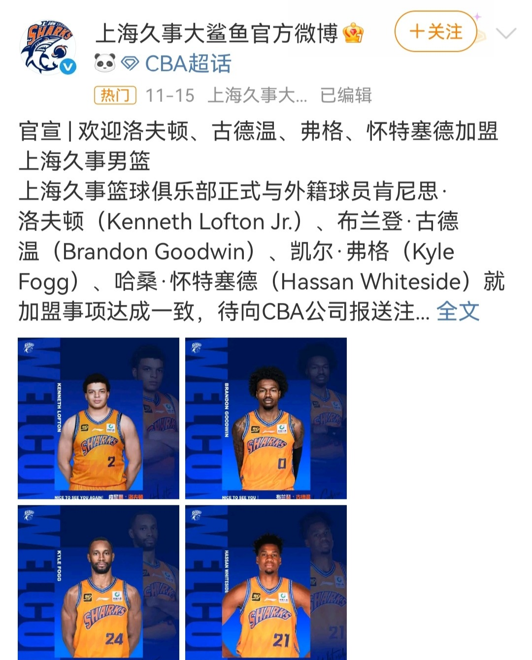 外援方面成功续约了小胖洛夫顿,又拿下了山西队核心外援古德温。同时引进了冠军经验丰富的弗格,以及老将怀特塞德。
