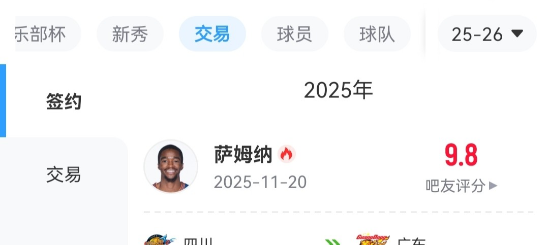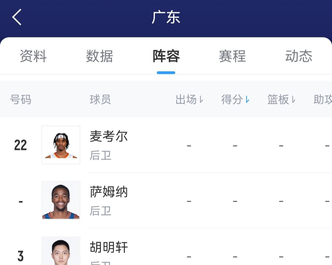 虽然广东队在签约萨姆纳的进程中经历一波三折,好在最终还是成功把他拿下。根据权威平台显示,萨姆纳已经出现在了广东队的阵容之中。