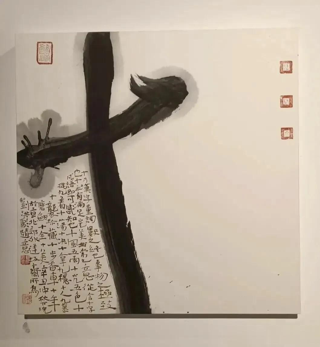 这个“十”字,顶天立地,斜而不倒,倾侧交错的笔画,如画图中的透视,把我们的目光,引向无限的远方。