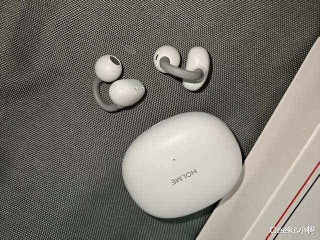 这款虹觅Air2在佩戴设计上很独特,耳机做了2.5mm前高后低的错位设计,能顺着耳道的自然结构贴紧,不会晃来晃去;加上电池仓的12°弧面耳托设计,能刚好托住耳背,把重量分散开,久戴也不压得慌。最关键是轻,单只才4.5g,戴在耳朵上几乎没感觉,哪怕连续戴三四个小时,也不会有夹耳感。
