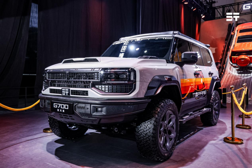 事实上,自上海车展亮相以来,G700就备受市场关注,尤其是作为唯一未上市量产车出战2025环塔拉力赛,以5个赛段冠军、全军团顺利完赛的耀眼成绩,证明“中国电混穿越之王”的实力,赢得越野爱好者的追捧。本届成都车展上,传承环塔穿越荣耀基因的G700环塔版迎来全球首发。采用典藏“烈焰”涂装设计的G700环塔版,完美还原环塔拉力赛激情基因,并配备阿诺达氮气减震,支持±15mm精密高度调节,兼顾沙漠飞坡与戈壁穿越的多场景需求,搭载265/70 R18黑熊AT胎、18寸越野轮毂、铝镁合金殿堂级底盘护板等装备,成就赛道级全域越野性能。